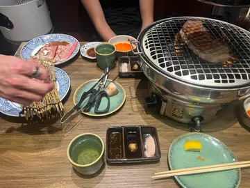 放咗喺收藏夹好耐嘅一间烧肉店,终于揾到时间去试吓,入餐厅前都充满期待,但入到去之后只可以用普通嚟形容。入到去之后以为餐厅嘅抽油烟机坏咗,烟雾弥漫,未开始食已经一身油烟味。入到去我哋嗌咗两个$488 Set,上菜𠮶一刻,我哋以为系一人嘅份量,谂住之后佢会继续上,点知原来已经系两个人份量……本身收藏呢间餐厅最大嘅原因,就系佢哋嘅牛舌,睇相以为佢哋嘅牛舌好大份,点知系我想像中嘅一半都冇🫠又薄又细反而呢份A5和牛有惊喜,油脂分布高,入口即溶,只可惜份量真系太少,每人得一块,连我手掌大都冇……店员推荐我哋将甲罗烧倒落最后嘅饭到,捞埋一齐食会更好食,所以我哋原汁原味食咗一个甲罗烧之后,另一个就留到最后捞饭食,果然有惊喜👍🏻由于我哋嗌咗两set,所以一个餐配和牛烧肉饭,另一个就配紫菜温泉蛋饭,我觉得喺唔加甲罗烧嘅情况下,烧肉饭比紫菜饭更好。相反,加甲罗烧嘅情况下,紫菜温泉蛋饭比烧肉饭更好,而且加嘅时候需要注意甲罗烧嘅份量,太多会好咸,半份甲罗烧就啱啱好😋餐厅有另一个优点,就系店员会全程帮你烧,完全冇需要自己落手,每一份烧肉都唔会烧得太生或者太熟,控制得火候相当好👍🏻赞另外我哋仲每人嗌咗一杯嘢饮,最后埋单大概$12xx 💰…查看更多