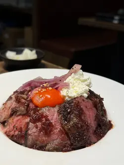 鞍下熟成肉价钱: $148 (150g)/ $129好味程度: 4/5服务🍴: 3.7/5环境🗾: 3.3/5性价比🥢: 4/5 (lunch)回头率😚: 3.7/5-鞍下熟成肉晚市主打烧肉,见佢啲套餐价钱都几合理,已经有和牛食。而午市就有唔同类型定食,都系以牛肉为主。今次吸引我去嘅系因为佢哋有柠檬牛舌!-✅✅忌廉慢煮和牛扒饭配兰王蛋。和牛扒脂肪丰富,牛脂感满满🤤色泽粉嫩,口感软熟!一咬已经觉得牛嘅油脂系口腔到散出来,同事保持肉感,唔系入口即溶𠮶只😆面头烧得香口,配埋紫洋葱中和油腻感。另外仲有打发到蓬松嘅忌廉同兰王蛋🥚攞埋一齐食,有蛋香,口感滑溜,加埋牛肉可以食好多饭🥰-✅柠檬牛舌定食。定食跟饭、面豉汤同柚子萝卜。饭粒唔会一patpat~牛舌无想像中好食,因为唔系太嫩/有口感,表面都觉得稍微干左D。某啲仲有小小筋,会影响口感🫣 不过要有的爽弹外层都有做到既…🤫有岩盐/酱油/柚子萝卜醋沾。-虽然我系牛舌控,但系今次我同朋友都一致认为和牛扒𠮶个比较好食,因为佢好嫩,成个配搭无可挑剔,仲可以食到好多饭🤭会encore𠮶个!…查看更多