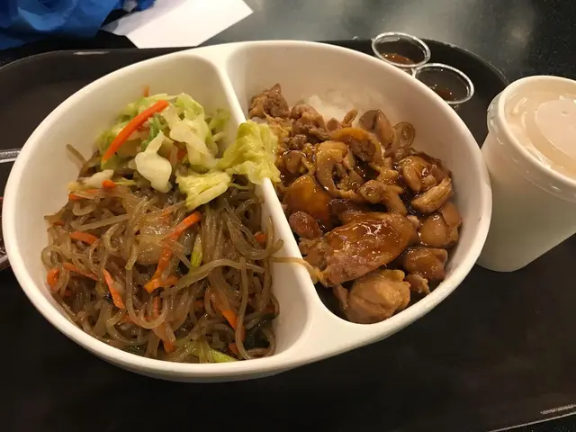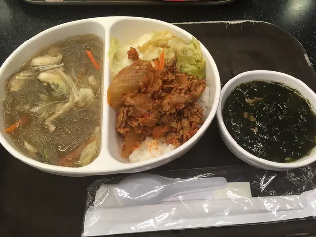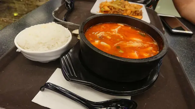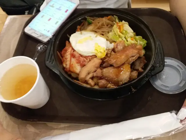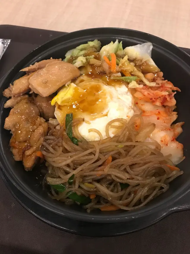 大大碗韓國炒粉絲!宜家做緊優惠韓風飯平$10,都幾抵食。不過啲配料其實調味比較重,又或者落咗味精,食完之後非常口渴。韓風飯自由選$48- 我揀咗泡菜炒豬肉韓式粉絲配醬油薯仔同炒魚片,仲送昆布湯。其實呢個自由選都有好多選擇: 有雞、牛、豬、粉絲、飯、蓮藕、菠菜、玉子、中華沙律等等。炒粉絲都幾多油,薯仔甜甜地好味道,魚片比較鹹加上口感唔夠彈牙,泡菜豬肉唔係好辣,撈埋粉絲一齊食啱啱好。不過始終都係肥膩咗少少,同朋友一齊分享會好啲。