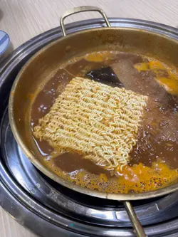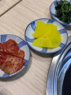 !二人被安排入座最中间嘅四人枱。餐桌上摆有齐备嘅自用餐具、干湿纸巾、厨具等,另外每二人都有个炉头,卫生企理。电子落单流程方便快捷。底面两页餐牌中韩对照,并附有彩图参考,简单易明。点好菜,姐姐仔迅即呈上无限添加嘅三款韩式前菜,当中个人最爱清新爽脆嘅萝卜片。同事口味不同,较为欣赏厚润嘅海带同酸辣嘅泡菜。