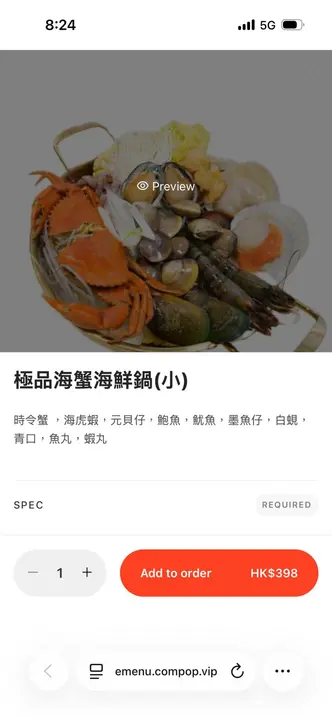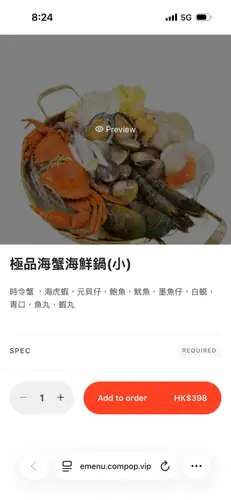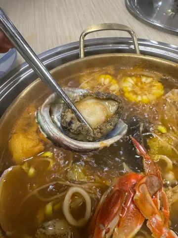 !除咗舖面橙亮鲜艳嘅蟹蟹同韩国虎虾之外,锅中仲有多款海材