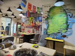 ,光亮嘅用餐大堂分开咗两个区域,散座与散座间有充足嘅活动空间。白色墙上贴满韩国地图、韩剧海报、韩星广告等,睇到寿星女不知几开心。嘻嘻,童心未泯嘅XO仔反而觉得扒紧墙墙嘅蟹仔得意啲