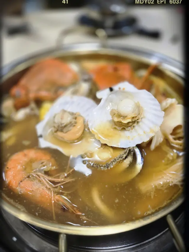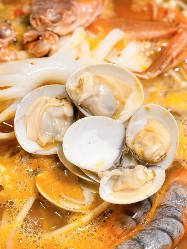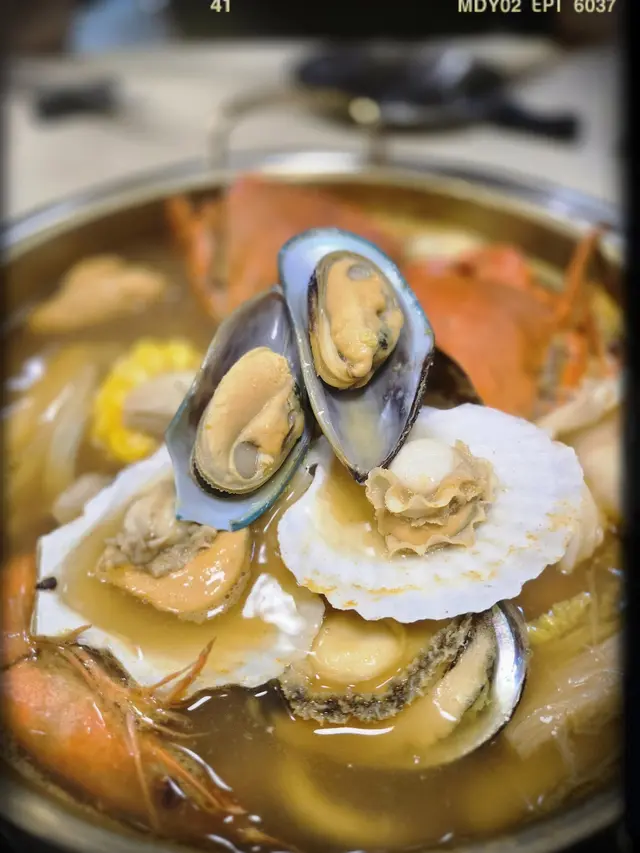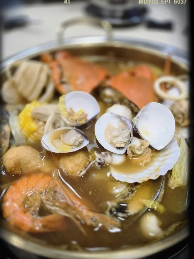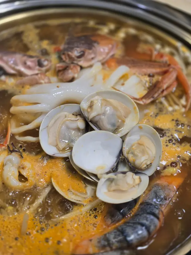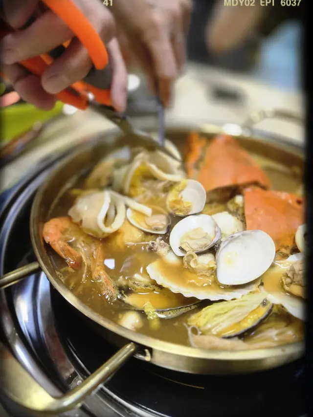 !除咗舖面橙亮鮮艷嘅蟹蟹同韓國虎蝦之外,鍋中仲有多款海材