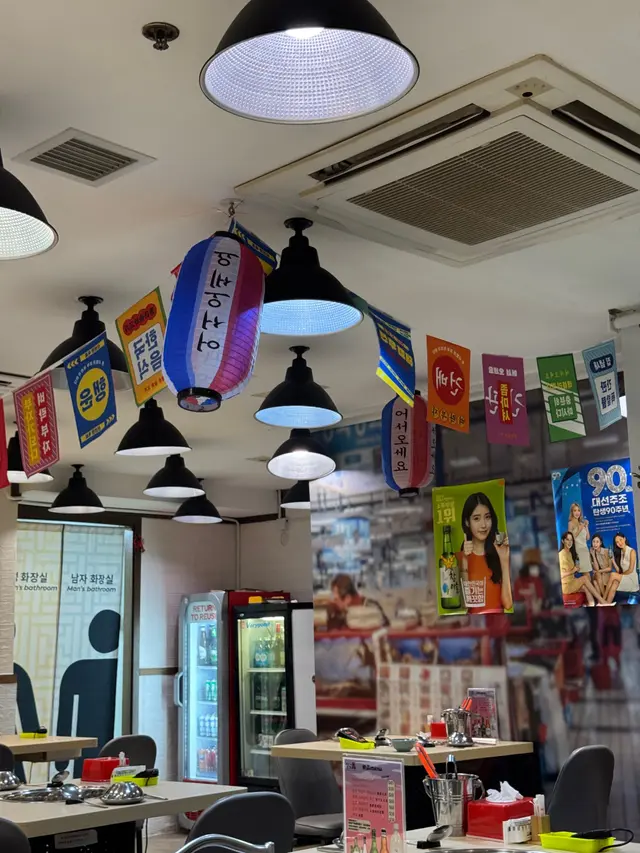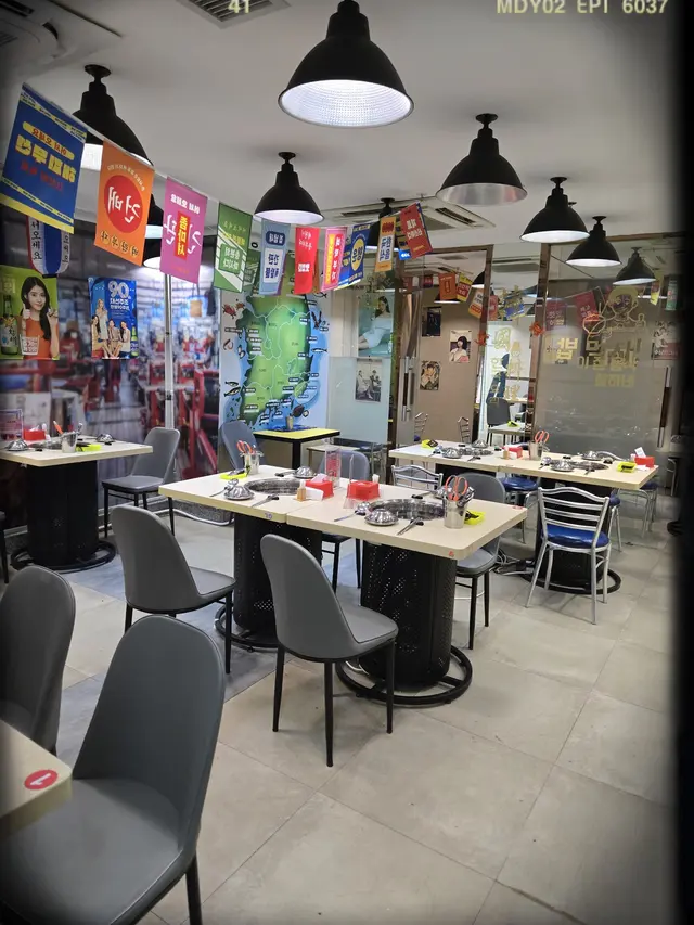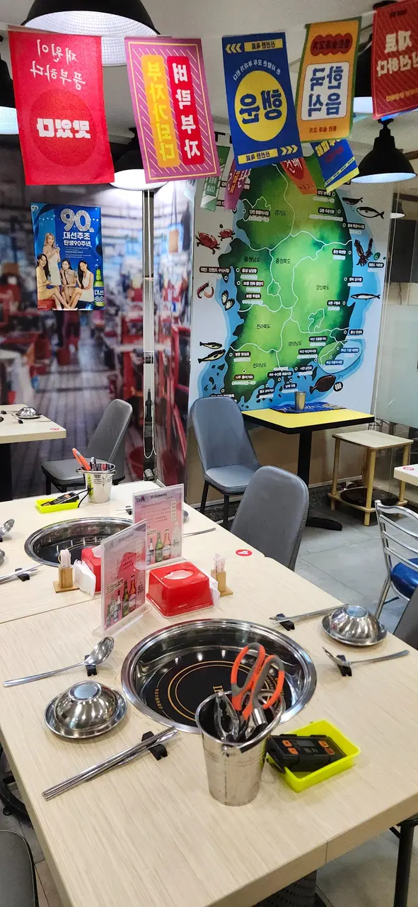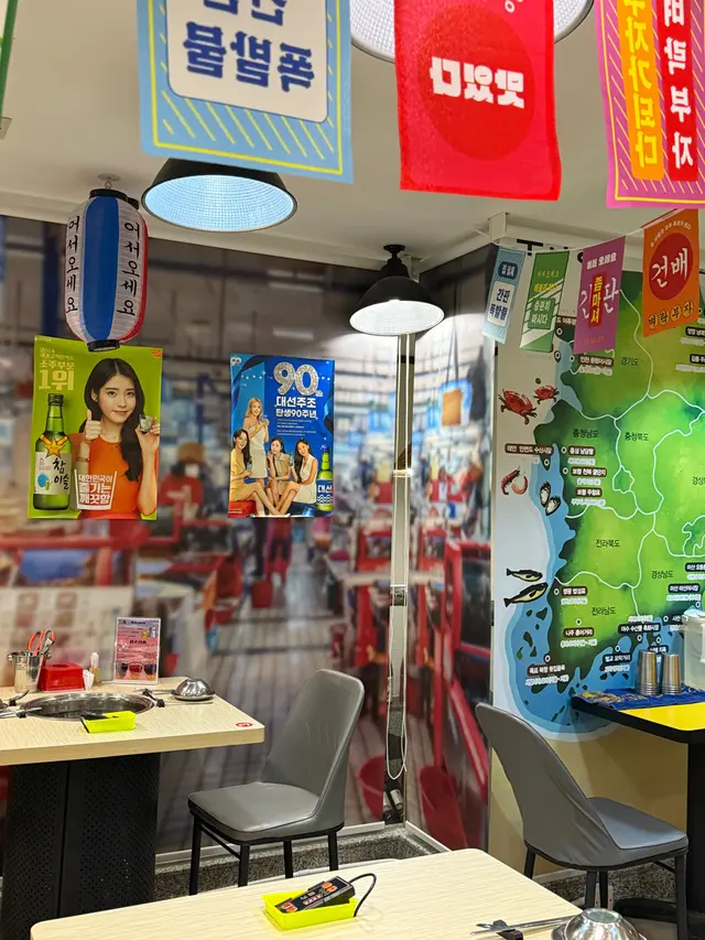 ,光亮嘅用餐大堂分開咗兩個區域,散座與散座間有充足嘅活動空間。白色牆上貼滿韓國地圖、韓劇海報、韓星廣告等,睇到壽星女不知幾開心。嘻嘻,童心未泯嘅XO仔反而覺得扒緊牆牆嘅蟹仔得意啲