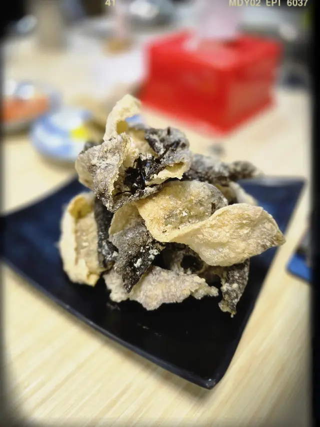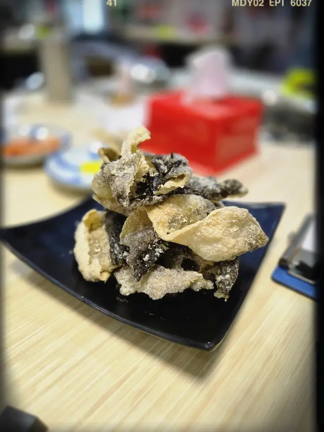 韓國紫菜燒魚皮($68):新鮮燒製嘅魚皮熱辣辣,咬落脆卜卜,好似薯片咁巧薄,香口惹味