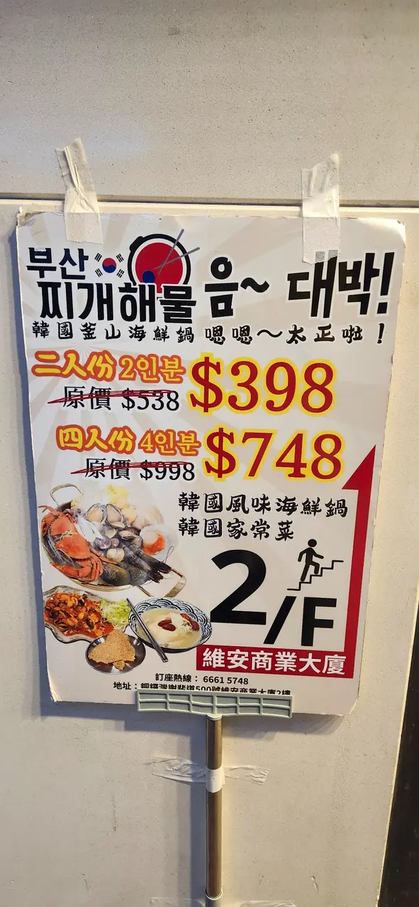 ,上星期就由佢揀咗去試「韓國釜山海鮮鍋」。樓上餐廳佔用面積全層,睇落個門口好似好細咁。真係估唔到個單位入面都幾大