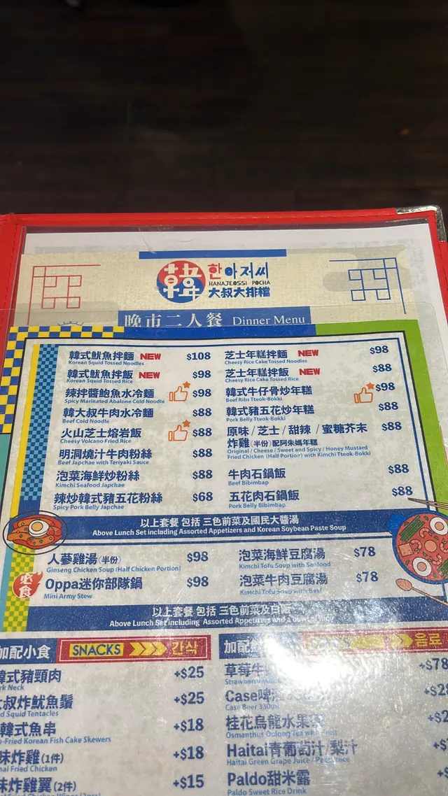 韓大叔大排檔 (铜锣湾) 网上订位享低至75折优惠并赚Rice Dollars 网址: https://s.openrice.com/QrLS0wG8D00 地址: 香港銅鑼灣登龍街28號永光中心10樓 电话: +852 84819684