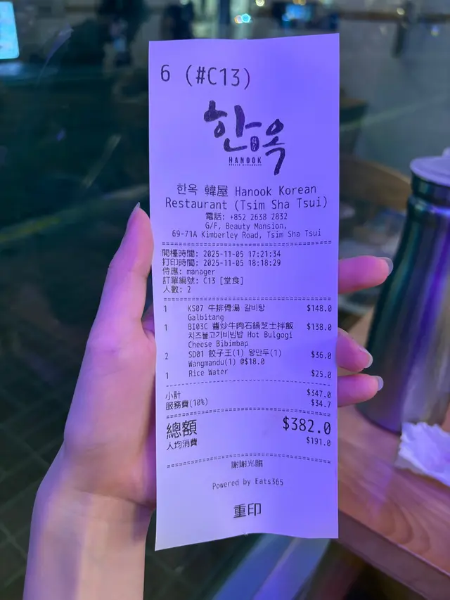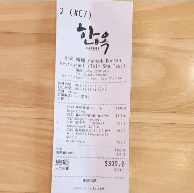 尖沙咀金巴利道出名多韓國餐廳,幾乎每一間都有競爭,連近期大熱嘅豬手小姐都係金巴利道開咗分店添,小妹仲記得大半年前定係幾個月之前呢🤔曾經有YouTube介紹過一間韓國餐廳,可以食得清淡又健康!呢一間就係叫做Hanook 韓屋啦😍餐廳門面參考真正韓屋般以古典嘅木質設計,店內則走時尚風格,霓虹燈牌及飛天豬造型燈牌,仲播上熱門嘅K-pop music ,非常有特色🤭小妹同朋友共點了一份蒸餃子🥟、一鍋豬肉湯、一鍋石鍋飯及一枝米酒,收工後要小酎一番🍻🥟醬牛小排餃子 갈비만두呢款牛肉餃子做到皮薄餡滿,賣相同emoji嘅餃子係一樣樣㗎🤓,食落嘅味道似餃子皮包牛肉漢堡扒咁,好少食到牛肉餃子呢一款又幾過癮嘅。🐷血腸湯 순대국밥小妹同朋友兩個都冇食過血腸湯,趁住今日呢一間食得清淡又養生嘅韓國餐廳,嗌咗鍋試吓。比我哋想像中好食喎,原本以為會好腥點知一啲都唔腥㗎,「血腸是豬大腸裡灌入各種蔬菜和調料後,放進烝籠裡蒸煮而成的」。每鍋湯就有一款配菜供應,跟呢鍋血腸湯的配菜就係自家製醃蘿蔔。🧀原味石鍋芝士拌飯 치즈돌솥비빔밥是晚MVP非此莫屬😍😍,店員會幫手將辣醬同飯撈埋在一起,仲話因為太多芝士所以要拌均佢先好食😋!睇見啲芝士同啲材料撈埋一齊,多重拉絲效果,真係睇到流晒口水😳!當所有材料痴埋一齊再一啖放入口,加上飯底係紅米飯,令小妹食落都比較健康🤭美味程度係兩個人分享一鍋已經爭住食😆下次嚟要自己一個獨食先得🤭🤭🍻青提子米酒 포도쌀와인小妹朋友介紹話好少餐廳會有米酒飲,於是我們點了一支青提子味米酒,小酎一番🫰🏻呢個米酒好好飲喎,佢冇清酒咁刺激,飲落口好順滑,仲以為飲唔晒點知最後一滴都冇😂😂而家諗返起,佢哋個石鍋芝士拌飯真係非常好食❣️…查看更多