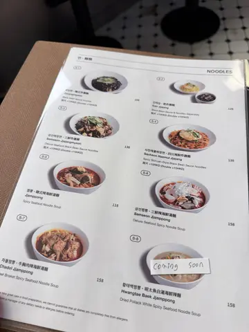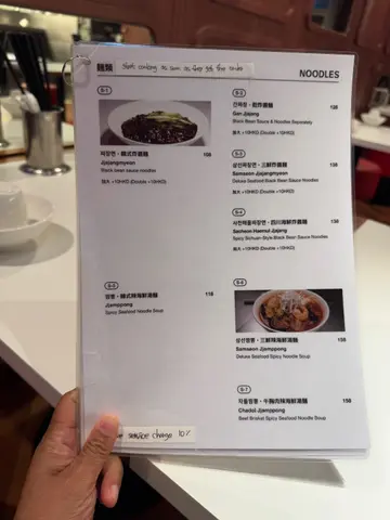 First of all, their noodle base was decent. But the black bean sauce was bland, spicy seafood soup was nothing special. There was a funny taste to the sweet and sour pork sauce. Nothing like anything from Korea. If the food stays the same, then would not visit again for a second chance. Everyone else who was wearing white was offered an apron upon ordering. But once again, I was not. The staff were polite. But I guess since it’s only their soft opening, there is much to improve. …查看更多