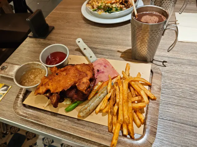 今日又黎搵新野食,搵到喱間有比較多分店嘅餐廳 - 韓樂一入去環境環境昏暗,比較有格調。我們每人一個餐,分别叫了......1. 韓風豐盛雜扒餐蒜蓉汁配熱朱古力,豬扒外脆內嫩,薯條金黃鬆脆。2.半容鮮茄肉醬扁意粉配凍朱古力,扁意粉Q彈有咬勁,茄肉醬酸甜鮮香不油膩。3. 芝麻八爪魚芝士燴飯配熱柚子新鮮冷壓檸檬茶章魚彈牙鮮嫩不柴,芝士融化濃郁4.辣八爪魚炒野菜年糕配凍特濃即磨咖啡年糕軟糯吸汁,彈牙不黏,章魚腳Q彈鮮嫩,野菜清脆,咖啡冰涼順滑因為每份餐都比較大份,下次4人可點三個餐就足够了,今次食到好滿足😋😋😋!Yummy 😋…查看更多