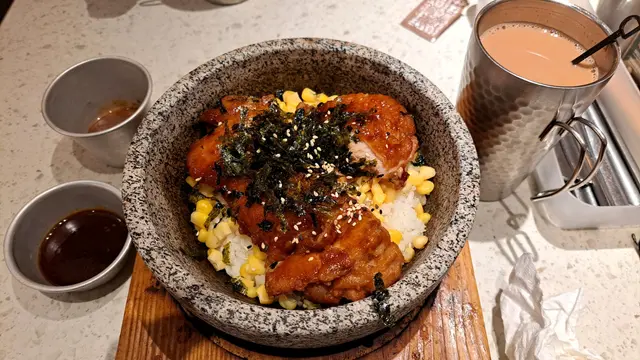 今日晏晝我去咗韓樂食嘢,叫咗個芝麻照燒雞芝士燴飯同埋一杯凍檸茶,一共$66。呢個燴飯第一啖食落去,覺得佢有啲鹹,但係芝士嘅拉絲效果真係一流,同照燒雞好夾。照燒雞嘅肉質都算嫩滑,幾好食。不過,成個飯嘅味道偏鹹,可能芝士同醬汁嘅份量要調整下。凍檸茶就正常發揮,檸檬片夠新鮮,茶味都幾出。總言之,呢個價錢$66嚟講,晏晝午餐都算係抵食嘅,但係鹹味方面建議可以改善下。餐廳環境都幾舒服,服務態度唔錯,值得一試。…查看更多