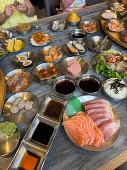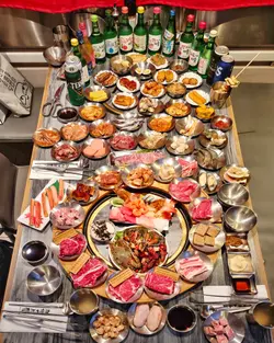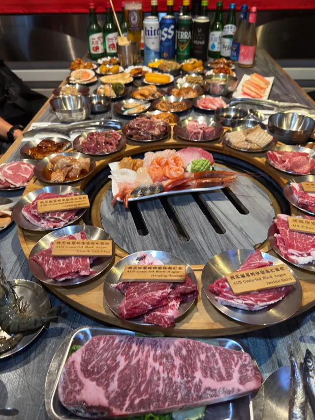 咩叫大排筵席?🤔💭 嚟到「韓國大叔」就明啦!👨🍳🔥 枱上面放滿過百款食物🍖🍣🍤,真係睇到都開心到嘩嘩聲啊~😍✨ 晚市120分鐘任燒任食⏰🔥,仲要係瘋狂上菜模式🎉,細細碟,多多款擺到成枱都係📸,相機先食絕對冇難度🤳💖講真,啲肉真係高質到爆!🤩🇺🇸美國安格斯下肩胛肉、肩胛翼、加上🇦🇺澳洲黑安格斯封門柳、牛板腱、牛頸脊等多款靚牛肉🐂🔥,燒完外脆內軟,juicy到不得了~😋💦仲有燒魚鮫🐟同燒豬皮🐷,係必食之選!👍 我兩個小朋友仲瘋狂愛上咗韓式魚蛋🍢,話好彈牙好過瘾🤣🎉 細佬仲未夠90cm係免費📏,但佢食得仲多過我哋😂🍽️今次仲撞正細佬就快生日🎂🥳,原來呢度生日有蛋糕送🎁,多過8人仲可以一人免費(星期日至四)👨👩👧👦,真係開心到癲咗!🎊💃 仲有呀,60歲以上長者都有85折👵👴,下次帶埋公公婆婆嚟食~❤️🌈晚市訂枱優惠真係抵到爛!💰🤯 每四人送原塊安格斯西冷牛扒🐄,我哋揀咗加$88任食海鮮刺身🐟🦐,仲可以用$1追加韓國直送 1+慶州千年韓牛西冷一塊 🐂🇰🇷或醬油蟹拼盤🦀🔥 !海鮮方面有元貝🐚、大蝦🦐、鰻魚🍱,刺身厚切又新鮮💎,油甘魚腩🐟同牡丹蝦🦐真心正~🤤👌 更可以升級食法國或韓國生蠔🦪,記得要預早一日訂啊,肥美到不得了😍💦飲品方面連酒精都有好多選擇🍺🍷,男女都會搵到心水💁♀️💁♂️。仲有韓式紫菜卷🍙、冷麵🍜、炸物🍟同雞翼🍗,小朋友實鍾意!👦👧 最後仲有樣嘢一定要提:21:00後入座每位減$40🌙💰,夜鬼家長出動啦!🌃👨👩👧👦開心就係咁簡單💖,一家人食餐好👨👩👧👦,已經係最好嘅時光🌈💫 …查看更多