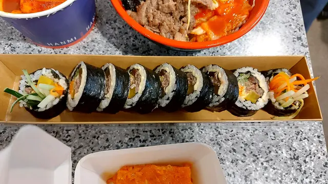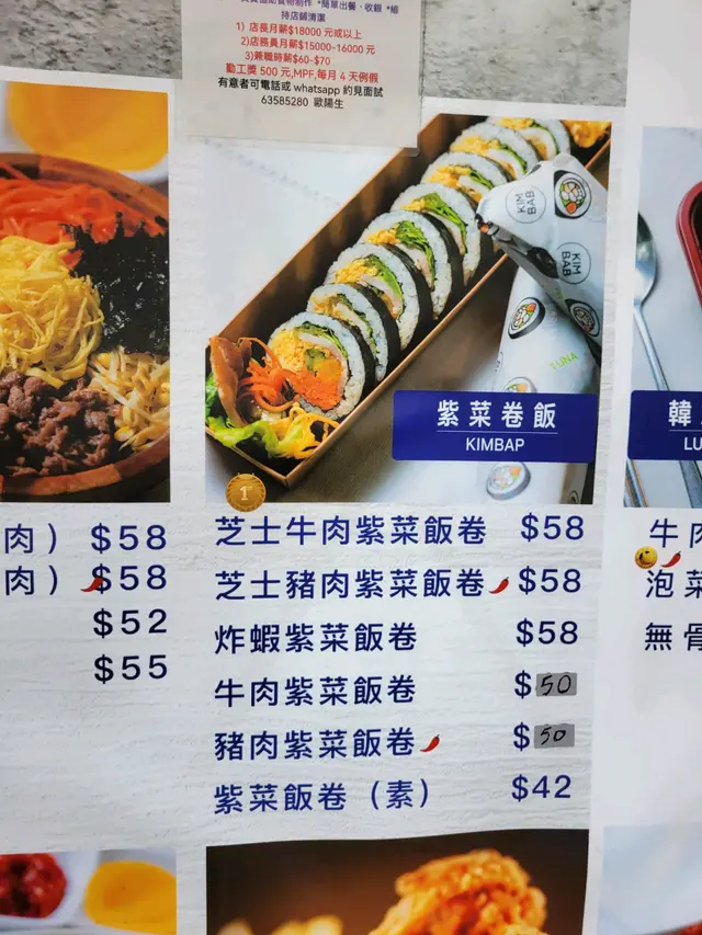 今日去朋友屋企玩,打算買外賣上去食,經過荔枝角見到呢間細細地嘅韓式小店,價錢親民,但係個樣都唔錯,keep住有人排隊就決定買來食。餐牌都好多選擇,唔同類型嘅韓國菜式同埋小食都有。就連餐牌都有中文同英文version!我地叫左幾樣嘢都好好食!韓式牛肉拌飯 $58 其實都好多料,然後最多人點就係kimbap,今次我地要左牛肉紫菜卷 $48同紫菜卷 $42,包得好紮實,泡菜煎餅 $38都煎得好香口,濃濃泡菜位,一百分!最後當然要點埋個香蕉奶 $13先夠韓式啦!重點反到上屋企,d野都keep到熱,後來上網先發現,呢間舖頭有好多間分店,以後經過都可以買嚟食。查看更多