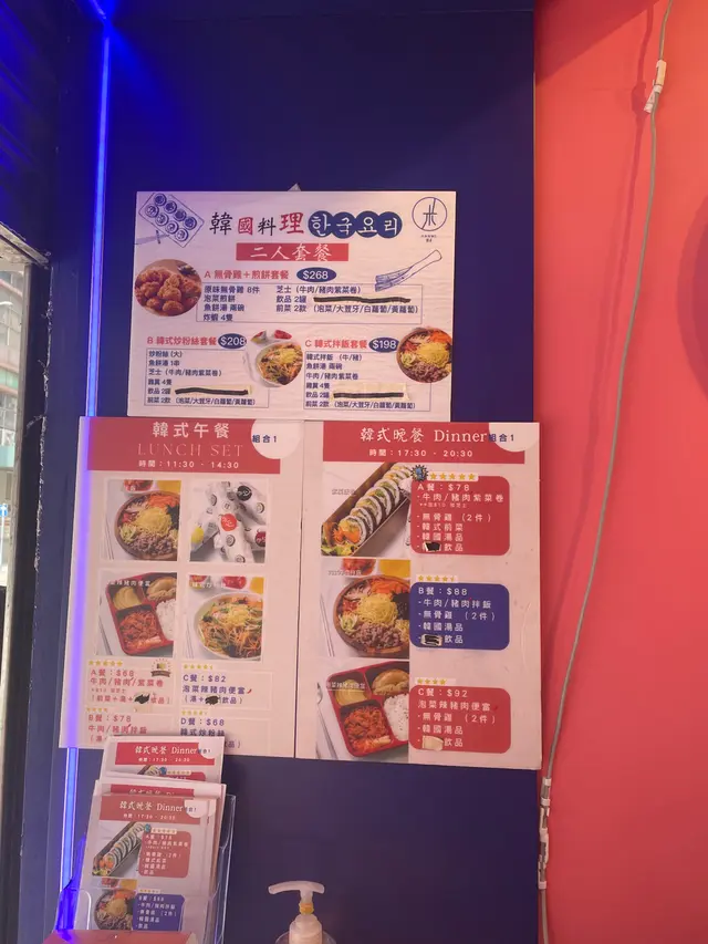 用外賣app叫餐,炸雞、泡菜煎餅、飯卷、窩飯,湯。除咗飯卷唔難食之外,其他都在正常水準之下,炸雞只是厚粉炸雪藏雞肉,口感奇怪,煎餅只有辣味,窩飯沒味道,份量出奇地少,2個2人餐共$600完全唔飽,性價比負分。查看更多