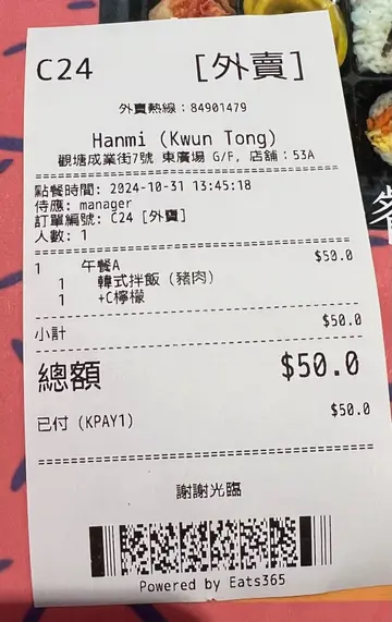 今日放工唔想食蒸饭,放工去左观塘东广场睇吓有咩食,因为好耐之前见呢度好多食店,最后拣左呢间韩米,佢哋主打韩式料理外卖🥡一于买返屋企度食