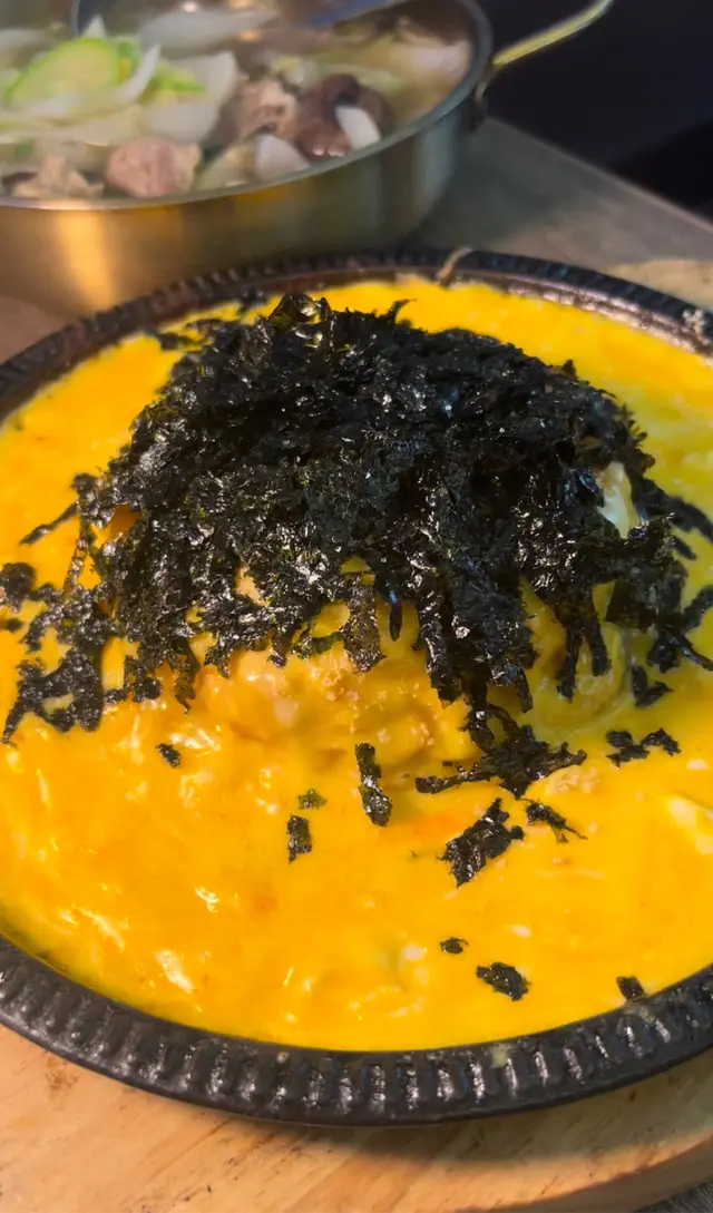 好多韓式餐廳打住拉絲芝士嘅旗號,轉鬆將一碟泡菜炒飯賣到百幾二百蚊......😐 而呢到只係需要$100就有澎湃芝士,真係好良心,芝士控時不時都可以過嚟滿足芝士慾喇🥹!➪ 一上枱見到佢好似溶岩咁bulu bulu,已經覺得好驚艷好期待😍➪ 撈落啲芝士仲要多到就嚟瀉出盤邊,芝士狂魔表示好!嗨!呦!➪ 平時可能要加錢先有肉食,但呢到就自帶五花肉🫰🏻➪ 食到尾仲有香軟芝士燶底,一啖接一啖停唔到口,啪晒成個冇難度😝查看更多