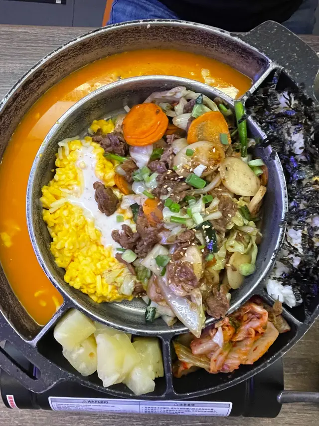 二訪這間性價比極高韓式餐廳😆就在荃灣廣場隔離非常方便上次吃過韓閣歡樂盤好難忘所以今次都要再食, 但今次揀牛肉韓閣歡樂盤-韓式牛肉是必食之選👍🏻鍋內有齊澎湃的三重芝士、味飯、牛油粟米爐邊蛋、韓式前菜牛肉醃得很入味,沾上拉絲芝士食超好食😋海鮮煎餅煎餅頗厚,咬落煙韌,入面有蝦、魷魚和大蔥,配上沙律醬或豉油更濃味👍🏻心多多蛋卷蛋煮得剛好, 不會太過生或太過熟好軟熟, 食完超飽肚!手打香水檸檬柑桔茶是新出飲品, 初頭還怕會好苦澀但原來好好飲, 不會太酸太甜喝了有清新解喝感覺青檸柚子蜜好大杯, 個人認為偏甜, 可加多點冰中和這裡只是吃了不過$400 而且沒有加一很化算✌🏻查看更多