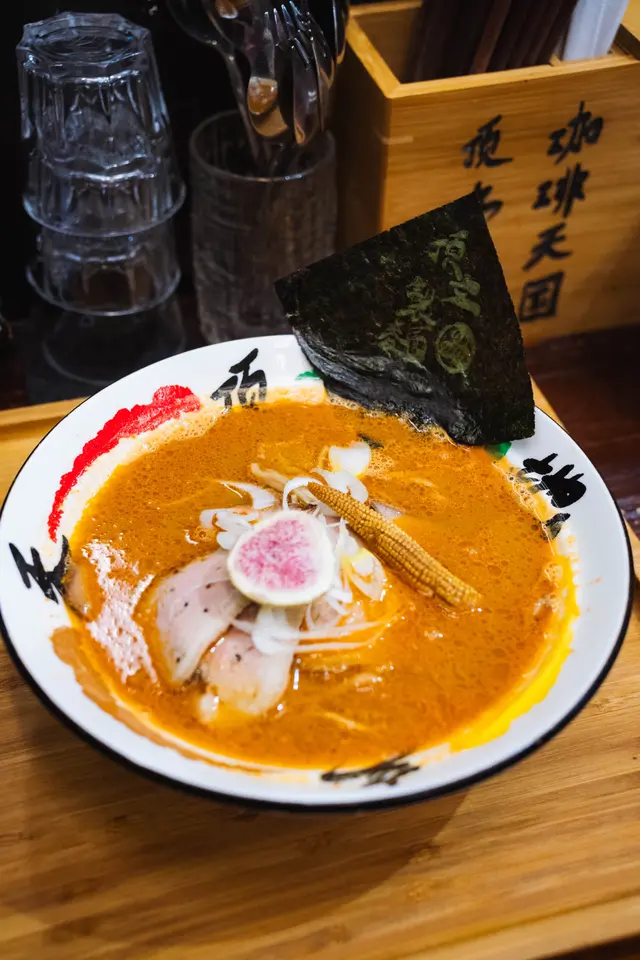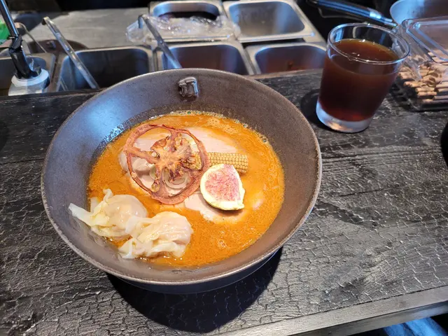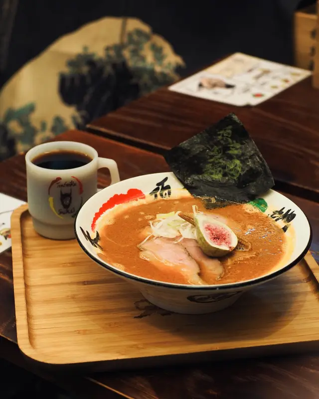 今次試左佢個蝦湯拉麵配cold blew 再加日式布丁嘅套餐價錢就$98+70=$168蝦湯夠晒濃味又夠香,一啖咖啡一啖湯,真係夠晒特別。拉麵質感亦都很不錯👍🏻冷萃咖啡都好飲,以一間日式拉麵店入面飲到呢個質素嘅啡真係好難得。