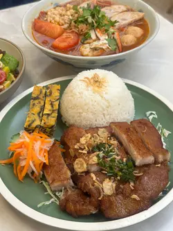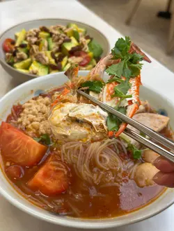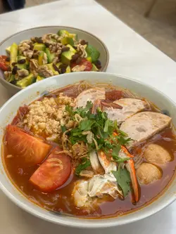 今日喺沙田放工去到好运中心见到有间食越南菜嘅餐厅叫顺越南牛肉粉之前食过印象唔错而且仲继续有下午茶供应就一于再encore 啦✨街头生牛肉汤河🍜🐮上菜时见到仲系红色嘅生牛肉🥩热汤好快就灼熟啲生牛肉🔥生牛肉有四大块🥩块块都系手掌咁大汤粉面头有好多䓤🧅🥬好有青草味,望落仲好靓河粉煮得刚刚好🍜份量亦好多,食极都仲有🤟🏻汤底鲜甜,食完碗面都唔会口渴😋河粉有跟一小碟辣椒🌶️捞落汤加葱食真系好夹问侍应攞多碟辣椒都会有求必应✨通菜🥬要蒜蓉鱼露炒🧄🔥都等咗少少时间先上菜上菜时仲热辣辣🔥证明系即整👍🏻上菜就闻到好香蒜蓉味🧄🧄食落爽脆唔霉仲好淡淡咸香鱼露点啜通菜好挂汁💦食落每条都有蒜蓉粒而且通菜好大碟👍🏻✨薄荷青柠梳打🍋🟩🌱🧊薄荷味好出有薄荷叶垫底🌱🌱每啖都有淡淡嘅青柠味👍🏻饮品坚系梳打好够气,唔会一上菜就走哂啲气💨餐厅位置阔落枱枱櫈櫈亦好干净侍应态度诚恳有礼👍🏻👍🏻落单同上菜时都会覆述菜名餐厅仲好好有纸巾提供通风亦充足💨💨食碗热辣辣汤河都冇流汗💦性价比甚高🤟🏻会继续帮衬…查看更多
