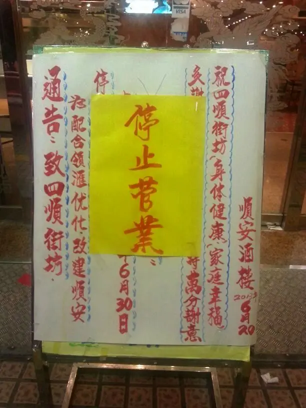 今日最後一日營業 味精將軍等级22013-06-30439 浏览 关注 話說喱間經營咗三十幾年嘅屋邨酒樓租約到期, 最後不獲領匯續約, 於是今朝就去咗飲早茶....喱點心都冇退步, 尤其係蝦餃好食, 啲粥都唔錯~最後喱間服務街坊超過三十載嘅酒樓晚上九點就落閘執鋪了, 從此告一段落!!…查看更多以上食记乃用户个人意见 , 并不代表OpenRice之观点。赞好分享今日最後一日營業 順安酒樓 https://s.openrice.com/QrLT062eZ00检举 张贴 评分4味道3环境3服务3卫生5抵食推介美食各式點心用餐日期2013-06-30用餐途径堂食人均消费$30 (早餐)