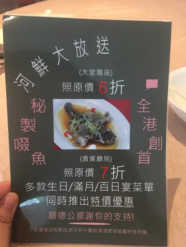 順德公漁村河鮮酒家 (观塘) 网址: https://s.openrice.com/QrLS0yjG3W0 地址: 香港觀塘鴻圖道84號香港觀塘帝盛酒店1樓 电话: +852 39896625
