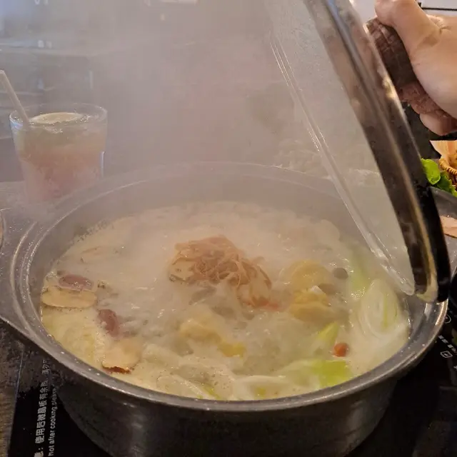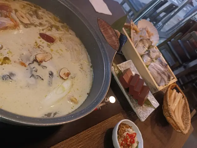 今日同個fd去咗打邊爐,間餐廳位於炮台山同天后之間,地理位置唔算好方便,條街仲要有啲暗😅-呢度嘅餐廳係要預先預訂海鮮,保證貨源新鮮好食,我哋預訂咗蠔同埋蜆😋🌟滋潤椰子雞煲 半隻 $178未食已經要讚吓店員非常專業,會逐一介紹個湯底,見到係生雞即場煮熟,唔明點解會有網民話係史雲生雞湯囉🌝未打邊爐之前先飲啖湯,清甜得嚟唔油膩,椰子聞落同飲落都好香,雞肉都唔會過老🌸🌟台山桶蠔 半份 $130屬於預訂貨🌸必食推薦!蠔身肥嘟嘟,淥完都好大隻唔會好縮水,入口爆漿超鮮甜,雖然得3隻,價錢有少少貴,但絕對物有所值💕🌟虎皮蜆 $78屬於預訂貨,蜆肉飽滿冇沙,浸落湯底吸盡精華加埋本身嘅海水味,鮮味十足!好食!🌟安格斯雪花牛肉 $138油脂花紋靚到一個點,而且都係厚切🥰輕輕一淥就食得,牛味香濃,好食!略嫌細份咗少少🤏🏻🌟油麥菜 $32循例都揀返個菜,份量都多🍃都係想像到嘅味啦😙🌟金菇 $16叫咗半份咋因為得我一個食,好食因為好索湯🤣🌟冷泡桂花烏龍茶 $58叫咗一壺兩份飲,茶味唔算出,反而係桂花清香撲鼻,aftertaste都有桂花香,最緊要係凍飲清爽解膩,打邊爐飲呢個簡直係絕配🫰🏽其實限時嘅打邊爐鍾意咩就食乜嘢,質素樣樣都好啲,最緊要係可以chill住同朋友傾偈,唯一心專注塞飽自己,其實都正🫰🏽…查看更多