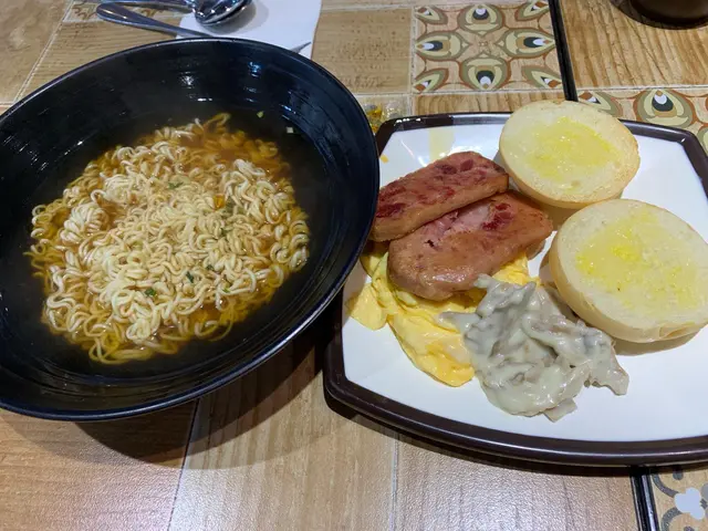 今次,我同佢就行遠少少,去到大埔舊墟直街果邊食呢間《食嘢》。之前,食呢間都係食晏晝,佢既咖哩當時已經覺得好好食,冇諗過佢連早餐都咁出色。得我老公叫左個出前一丁配滑蛋、午餐肉、磨菇、豬仔包。份量多之餘,重點係唔係食多士,係食豬仔包