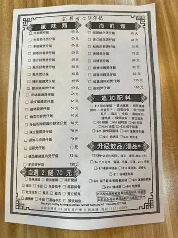 同朋友元朗揾食 见秋风起又咁啱见到呢间煲仔饭小店决定一试 店铺不大 只有大概6台位,入到去都只有一台客人。见到Menu有好多选择,连龙虾濑尿虾煲仔饭都有,但最后都拣返传统d嘅肉饼煲仔饭同腊肠排骨煲仔饭。