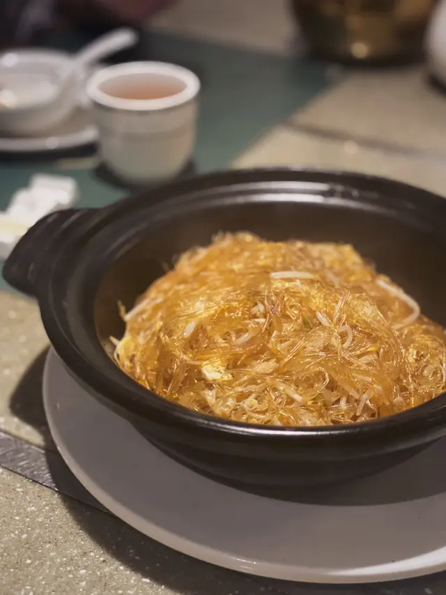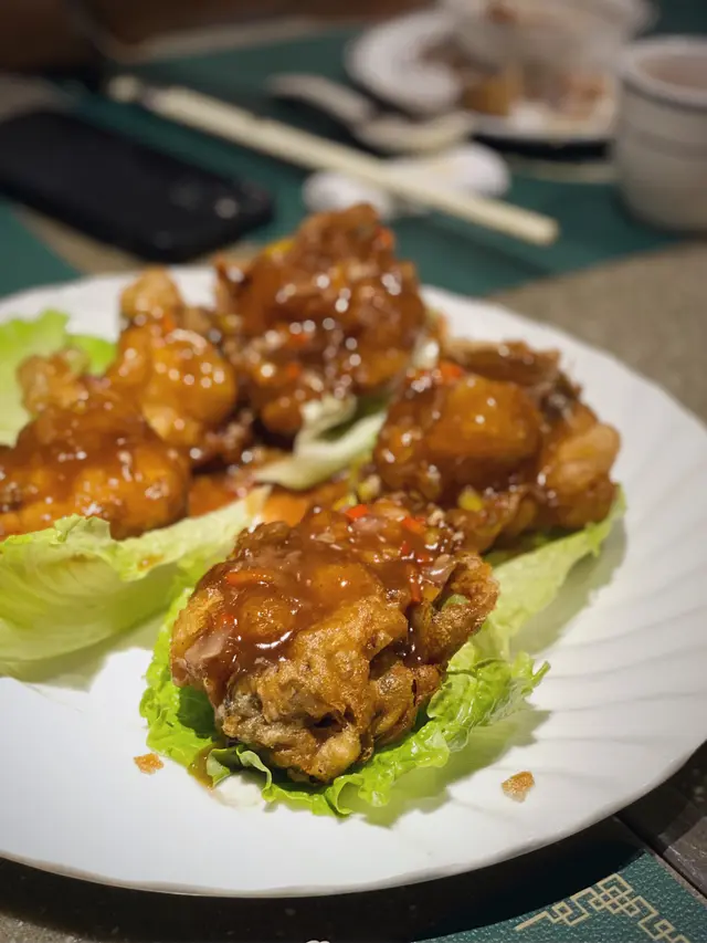 我向來都喜愛中菜🥰近期除了St. Regis的潤成了我的新寵兒,另一間價錢更貼地、性價比極高的食美軒同樣深得我心❤️⁡食美軒可算是近期發掘到最有驚喜的餐廳👍🏻位處旺角東站附近某一條小巷,門面極不起眼,但入到店内裝潢算不錯!食物質素亦遠超預期👍🏻🤩食材用料新鮮又高質,炸物特別值得一讚🤤全部外層薄脆而不油膩,中間又保留食材的原汁原味,真正做到外脆內嫩😋⁡👉🏻食物: 4.8/5我們點了$350一位的套餐,唯一要挑剔是份量太多🤣飽到差點走不動🐽⁡▪️迎賓三小碟椒鹽白飯魚,細條幼身但外脆、魚肉超級嫩👍🏻 話梅櫻桃蘿蔔酸甜爽脆,非常開胃!松露醬金菇火鴨絲,特別喜愛內裡加入了香芹碎,非常香😋⁡▪️黃金鮑魚配南瓜我每次都很怕點黃金(咸蛋黃)類菜式,因為極易中伏🙈許多餐廳都隨便將油淋淋的咸蛋黃油淋上炸物,令人入口非常油膩、食物又顯得分離🙃⁡而這道黃金鮑魚配南瓜盡顯廚師工架!咸蛋黃和炸皮完全融合,入口帶咸蛋黃香之餘,不會蓋過食物原味👍🏻南瓜又粉又甜,沒想到用黃金煮法會如此美味😋!吃完碟上都不會見到額外油漬,打破了我對黃金的固有觀感!😳⁡▪️砵酒焗桶蠔桶蠔又大又肥美🦪醬汁有點像咕嚕汁或京式甜酸汁,酸酸甜甜,鍋巴是精華所在,乾、爽、脆,沾著醬汁吃非常美味🥰⁡▪️雪蓮子牛肝菌燉竹絲雞茶壺湯打開茶壺蓋,嘩😳😳😳😳😳超級足料!滿滿的牛肝菌、竹絲雞及桃膠等,湯料比湯多!難怪要用茶壺上,才可以隔渣!入口清甜,非常滋潤!⁡▪️雙芹炒龍躉斑球龍躉片又大又厚!西芹爽脆!⁡▪️遠年陳皮蒸龍躉頭腩陳皮非常香,魚肉蒸得嫩滑👍🏻⁡▪️香酥牛肋肉不愧是店內招牌菜💯👍🏻嚐過不同中菜廳的牛肋肉,大多以紅燒汁炆煮。食美軒則以半肥瘦的牛肋肉再炸至脆皮,沾上燒汁享用。牛肋肉極嫩滑帶油香🤤醬汁亦帶牛香,令牛肉味更為突岀!實屬必點之選🤩不過一人吃2塊已飽🐽伴碟的話梅櫻桃蘿蔔能解膩!⁡▪️櫻花蝦百合炒芥蘭櫻花蝦炒得香,不過芥蘭略油。⁡▪️柚皮乾燒伊麵我向來都喜愛吃柚皮,媽媽有時都會煮!柚皮是頗花功夫的一道菜,愈來愈少餐廳供應此道菜式👀伊麵濕潤不油膩,👍🏻⁡▪️芝麻糕💯💯💯💯💯芝麻超濃郁!吃完牙齒都黑了😂⁡已期待下一次再去吃🥰查看更多