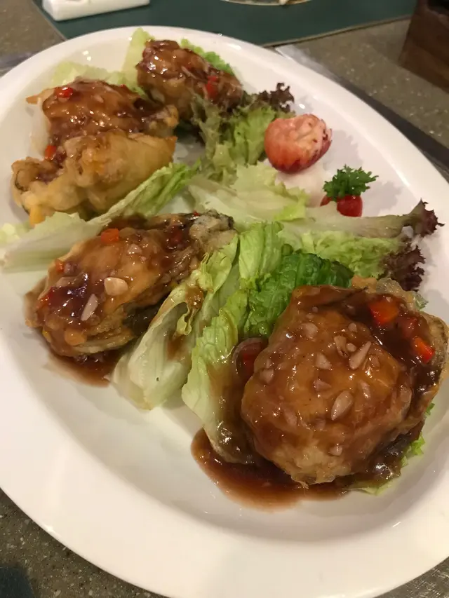 話說臨近中秋,特意去book枱諗住食餐高級嘢,因見一致好評同環境相當唔錯。當日book左6:30pm,入席睇menu諗住叫哂d特式嘢同招牌菜試吓。點知被告之,除招牌菜無之外仲有幾道菜都無哂,6:30pm算係剛晚市吧,咁都無……最後叫咗個龍蝦雞個道菜、湯、炸蝦球、咕嚕雞球同蒜蓉炒菜。又被告之全隻雞太多,4人會食唔哂,改為半隻,點知其實份量唔多。除咕嚕雞球同蒜蓉炒菜好食外,其他菜式都一般,大失所望同預算。埋單$1039,但感覺只係似去一般茶樓,無太大差別……由於太一般,所以都無點特別影相。可能要預訂定菜式瓜。不過有少量生果同雪糕糖水補返。查看更多
