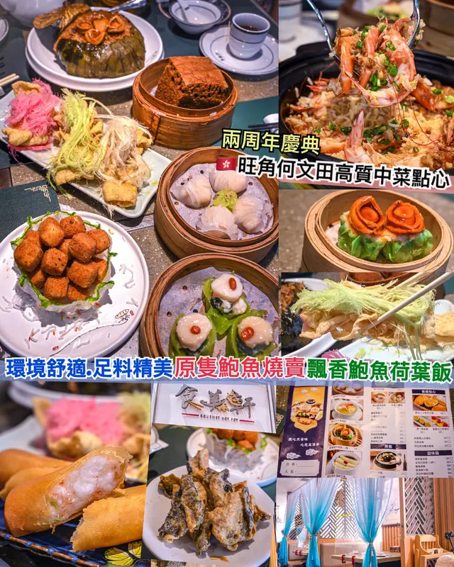 旺角何文田區茶客街坊必到之地!上星期日發掘左間一流點心中菜館,同住鄰近嘅屋企人一齊情不自禁咁狂點點心😋👍食美軒紮根靜中帶旺嘅何文田太平道,清幽街度其實與旺角東站只有一街之隔,裝潢雅緻嘅中菜館位於二樓,幸好訂定檯😆,全場爆滿非常興旺👍就咁睇已經見到卡位私隱度高,坐得舒適最緊要! 係同家人飲茶傾計嘅好地方!而家比預期嘅性價比高,快Bookmark 啦🥳飄香鮑魚荷葉飯 $128推介:⭐️⭐️⭐️⭐️⭐️ 最抵上檯香噴噴,四隻鮑魚仔相機食先,彈牙鮮甜,其他配料有瑤柱絲,雞粒及冬菇粒等,鮑魚汁底拌勻飯粒煙韌入味,炒得均勻焗得入味,份量岩哂四至六人,十分飽肚。原隻鮑魚燒賣 $58推介:⭐️⭐️⭐️⭐️⭐️ 打卡!賣相完勝,精緻招牌影相系列,溏心鮑魚爽口,燒賣皮用左蔬菜汁上色,價錢唔平,但勝在餡料口感豐富,四個人就要叫兩籠啦😆阿拉斯加蟹肉春卷 $42推介:⭐️⭐️⭐️⭐️⭐️ 必食呢款有驚喜,小編膚淺未食過阿拉斯加蟹肉做春卷😋比平時食開嘅鮮味同口感提升左數倍,要叫!黃金豆腐粒 $48龍鬚蛋散 $38黄金魚皮 $58推介:⭐️⭐️⭐️⭐️⭐️三款炸物小食真心無得彈,黃金豆腐粒水準到家👏龍鬚蛋散好有誠意🥳 三色龍鬚專為食客打破沉悶點心規則,與蛋散咸甜交集,好味。將本身人氣火鍋嘅黄金魚皮放埋落點心系列,香脆掛汁,咸蛋王佈滿魚皮面👍食美軒鮮蝦餃 $48推介:⭐️⭐️⭐️⭐️⭐️皮薄餡靚,有重量有份量👍蝦肉新鮮爽口鮮甜,晶凝通透係基本條件,幾有有水準。帶子菜苗餃 $42推介:⭐️⭐️⭐️⭐️⭐️翠綠健康,除左鮮味帶子在上,下面有彈牙爽口蝦同菜苗鍋焗香蒜海蝦飯 $98推介:⭐️⭐️⭐️⭐️預先大家食唔哂最後都照叫嘅海蝦飯🤣要等返少少時間嘅原煲鍋焗香氣迫人,海蝦開邊吸哂蒜茸精華,飯氣攻心都要食到頂點先完😂陳皮牛肉球 $38推介:⭐️⭐️⭐️飲菜基本野,驚喜不大,可以留肚選其他特式😆黑糖黑拉糕 $36推介:⭐️⭐️⭐️⭐️⭐️大家實在太飽無特別叫甜品,反而呢個黑拉糕清香黑糖味軟熟易入口,作為甜品都係唔錯嘅選擇。全日茶位都係$13/位,整體係一間來到旺角何文田附近值得訂位去嘅優質酒樓中菜,每款點心都可左額外一份誠意落去,下次要來試下晚飯同火鍋!👅美味: 9️⃣ 😮驚喜: 9️⃣✨環境: 9️⃣ 💆‍♂️服務: 9️⃣💡性價: 9️⃣ 🐽飽肚: 🔟💫回頭: 9️⃣ 👍推薦: 9️⃣查看更多
