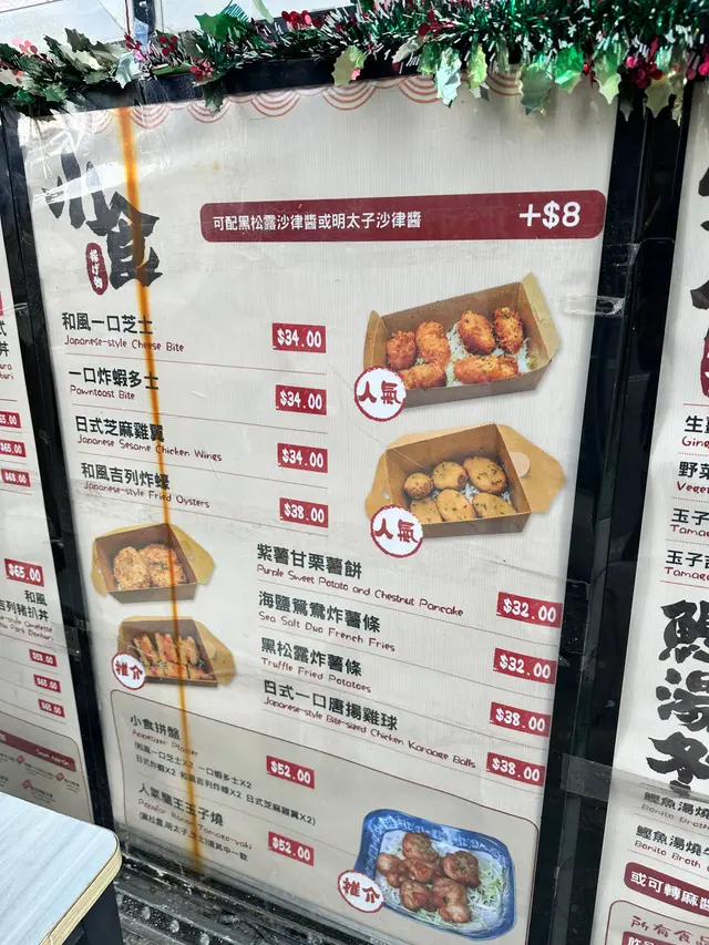 蘭王蛋醬油潰封門柳丼$78封門柳肉唔會un,比得好足,超級多塊,仲會有隻蘭王蛋,呢隻蛋加埋,口感更加豐富。日式咖喱芝士漢堡扒丼飯 $68個漢堡扒入面有芝士,流心出黎,好好食!小食拼盤(和風一口芝士x2、一口蝦多士x2、日式炸蝦X2、和風吉列炸蠔X2、日式芝麻雞翼×2)一次過食晒幾款小食,個炸蠔好大粒,蝦多士好特別,建議2個人可以叫呢個小食盤。好欣賞呢間小店,一個姐姐全程一腳踢,仲要即叫即做,好有愛既一間餐廳,大家多多支持。仲有做外賣優惠同埋殘疾人士優惠!…查看更多