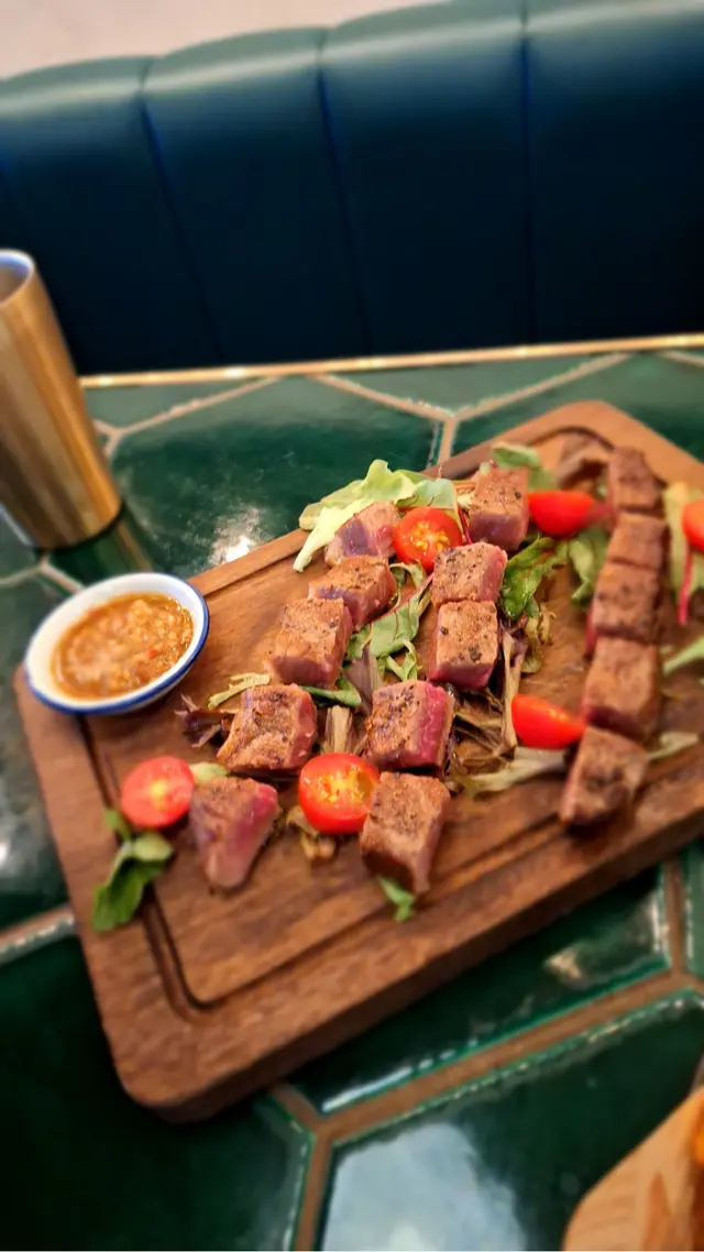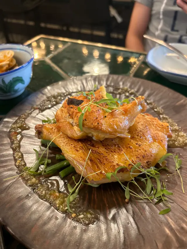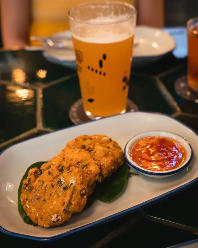 四個人衝入嚟,點知食吓傾吓,個個都唔想走 😂開頭叫咗個手打墨魚餅做餐前小食,好彈牙,好有驚喜!(掛住食,相都唔記得影 🙈)之後再加咗幾款:•泰式生蝦:夠新鮮,酸辣度啱啱好•燒蠔:大大隻,啖啖肉•黃油雞:一定要試!皮脆肉嫩,帶少少泰式香味,幾特別飲品方面又係另一個驚喜,手工啤酒選擇多到選擇困難症發作,我哋乾脆每人叫一款再互相偷飲 🤣氣氛輕鬆,店員又健談,我哋由七點坐足成晚,完全冇人趕。總結:鍾意邊食邊吹水+有酒有笑聲嘅,可以 bookmark 呢間。…查看更多