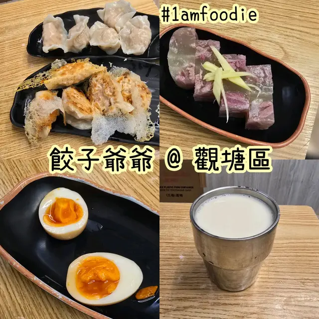 【觀塘區】【餃子爺爺】喺觀塘見到呢間嘢,我好似未食過,好奇心驅使之下就走咗入去食。呢邊啲食肆競爭都幾大,要生存真係唔容易,又睇佢哋點做先。咁叫得「餃子爺爺」,我就梗係重點食佢哋啲餃子,爺爺手工湯餃配豬骨鮮魚湯,個湯好鮮,但好似鮮得有啲誇張,唔知咩事。叫咗 $49 十隻嘅「帶子韭黃鮮肉餃」拼「芝士玉米鮮肉餃」,叫滿十隻仲可以轉半煎煮,配埋冰花煎餃,一半湯餃一半煎餃咁。我就覺得兩款各有特色,可以咁樣食晒都幾好,唔使諗。前者真係有啲帶子粒喺入面,幾特別,就顯得後者普通啲,但其實都唔錯。我仲叫咗 $8 嘅「醉糖心蛋」,係幾香酒味嘅,蛋亦都做到糖心。而 $39 嘅「水晶肴肉」就好似少肉咗啲,啫喱佔多咁,不過呢個價冇得要求更多啦,過吓口癮。嘢飲我飲 $6 嘅「特濃豆漿」,唔知喺邊度斟一杯出嚟嘅,正正常常。埋單 $106,我覺得可以。。。(地址:觀塘協和街131號仁富大廈地下E號舖)#1amfoodie #foodie #hkfoodie #thatfoodiething #hkfood #food #instafood #yummy #foodlover #delicious #foodies #tasty #globaleats #tastyfood #foodpics #followforfollowback #love #eat #openrice #google #xiaohongshu #1am觀塘區 #觀塘 #餃子爺爺 #爺爺手工湯餃 #帶子韭黃鮮肉餃 #芝士玉米鮮肉餃 #冰花煎餃 #豬骨鮮魚湯餃 #醉糖心蛋 #水晶肴肉 #特濃豆漿 #1am1801 #1ambackup…查看更多