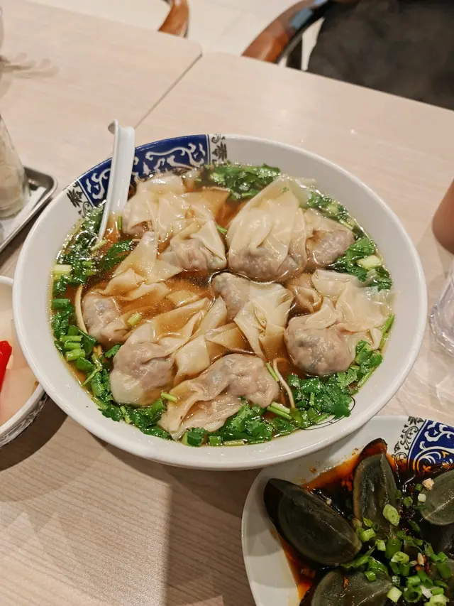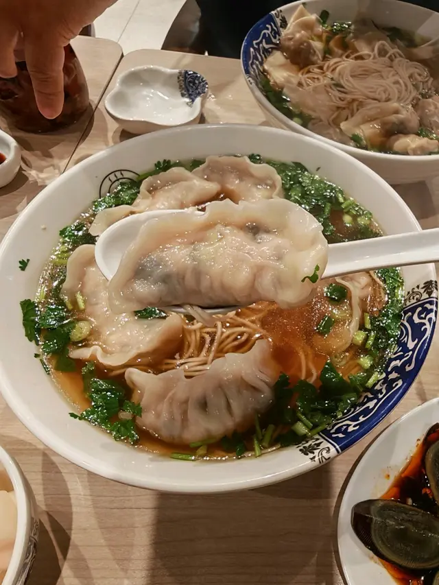 餃惦的餃子一向又大隻, 又足料, 又好食, 今晚來<餃掂快線>, 再戰餃子全餐。<雲吞麵>雲吞麵用上海麵作為麵底, 雲吞有好多隻, 有成12隻, 隻隻都皮薄餡料足, 份量好多, 大大碗, 好食又抵食。<雲耳椰菜餃子麵>雲耳椰菜餃, 每一隻都好巨型, 脹卜卜, 餡料十足, 個皮勁滑, 每一啖入口都啖啖肉, 配埋上海麵, 五十幾蚊呢個價錢, 絕對推薦!!~<至尊松茸煎餃>呢個至尊松茸煎餃, 入口啖啖肉, 而且帶有淡淡的松茸味道, 還配有一碗自家製無味精粉葛鰂魚湯, 真材實料, 喜歡食煎餃的人, 一定會愛上。<麻辣松花皮蛋>皮蛋質素好高, 咬落去有微微糖心的感覺, 以特製醬油及麻麻辣辣的醬料來製成, 味道調教得非常好食。<自家製山楂雪梨水>山楂雪梨水入口清新, 而且味道屬於清甜的一種, 不會過甜, 感覺清潤。個人覺得金鐘呢間<餃掂快線>, 地方環境非常舒適, 以吃餃子的店來講, 坐得舒服, 人不太多, 又唔趕客, 服務也是不錯的!!~…查看更多