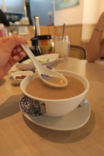 平时放工唔知食乜好,就会random食饺掂。最钟意佢嘅状元九鼎汤,材料用粉葛、顺德活鲮鱼、香山活鲫鱼、红萝卜、扁豆、赤小豆、新会陈皮、蜜枣、鲜排骨 ~ 祛湿滋润,最紧要冇味精 😋 煎牛角鲜虾猪肉饺($60)— 推荐新产品,外皮酥脆,内馅丰富,虾肉的鲜甜与猪肉的香气完美融合,沾上四川辣酱就更加惹味。香煎软心芝士饺($58) — 内馅丝滑,搭配微微焦香的外皮,加上粒粒粟米,口感层次分明。汤韭菜饺($49) — 平时食开佢地嘅韭菜,馅料新鲜,皮薄馅多。蜂蜜柠檬薏米($20) — 消暑良品,去湿、排水一流。佢哋嘅酱料都系另一个highlight,自己腌嘅酸萝卜,每次都会食好多旧 😆 …查看更多