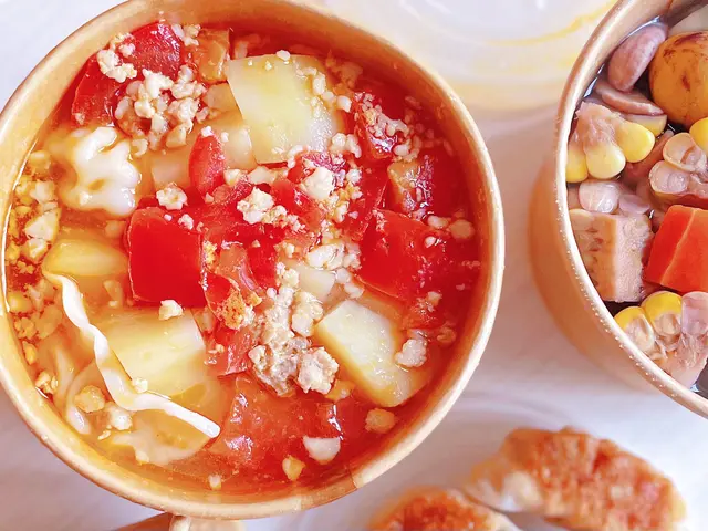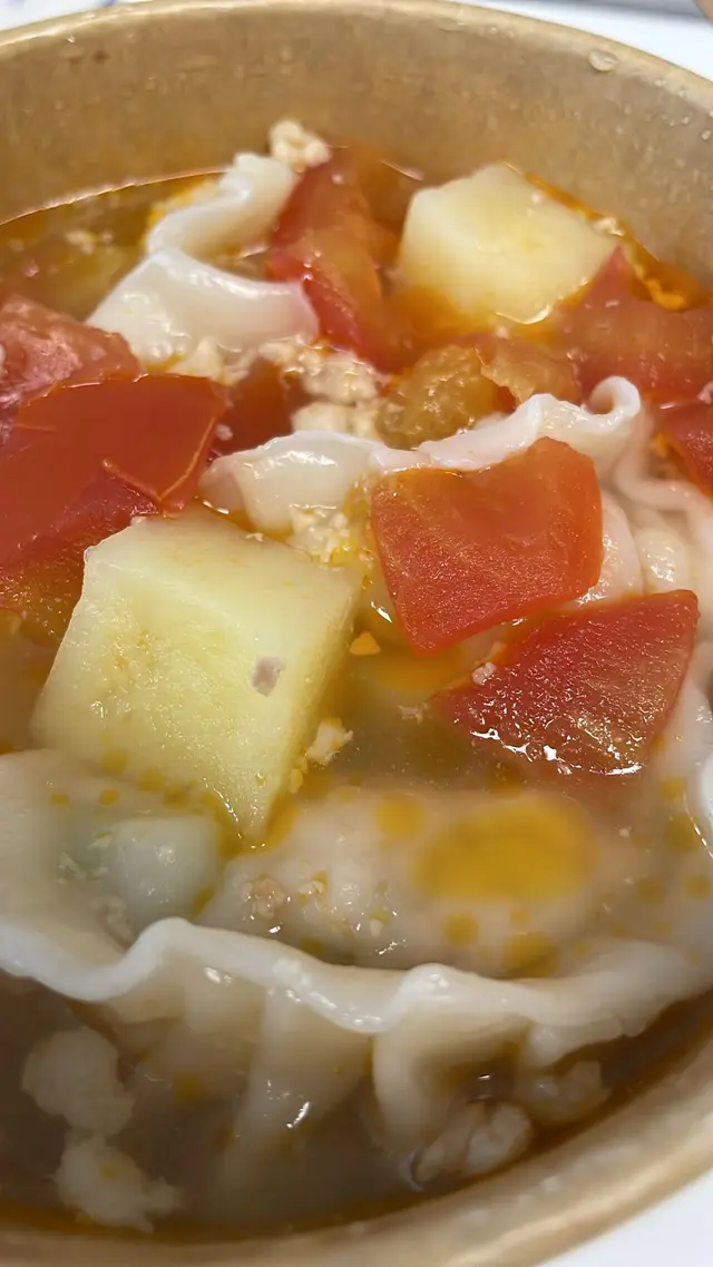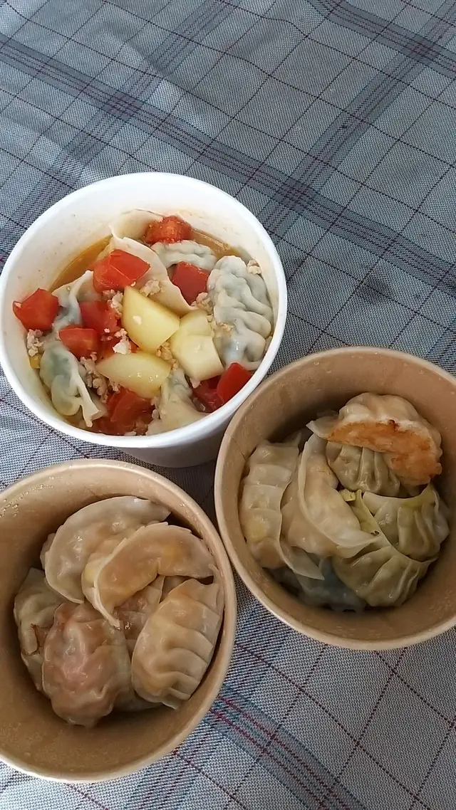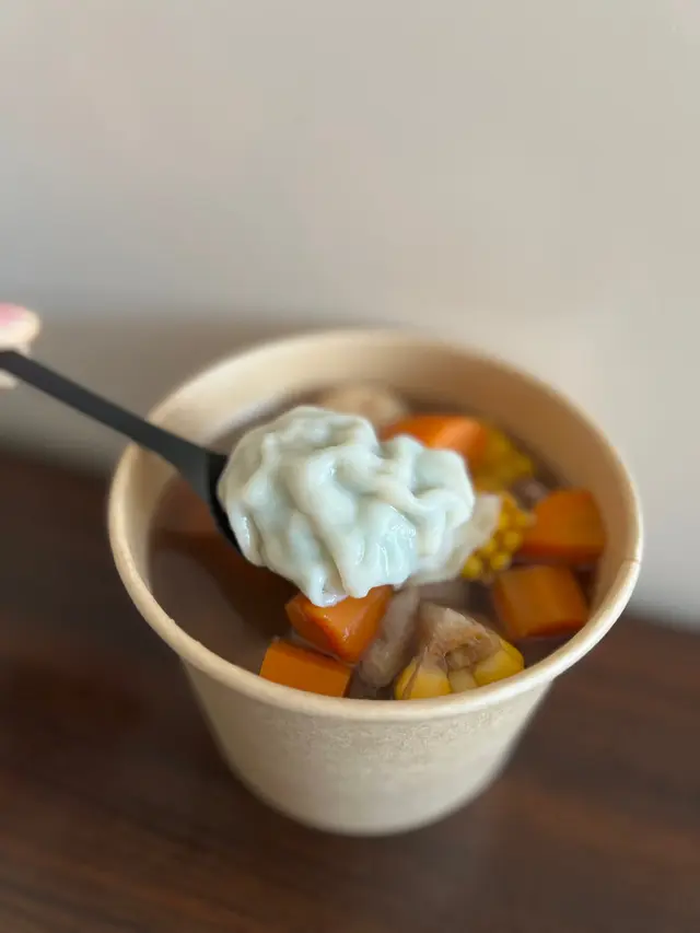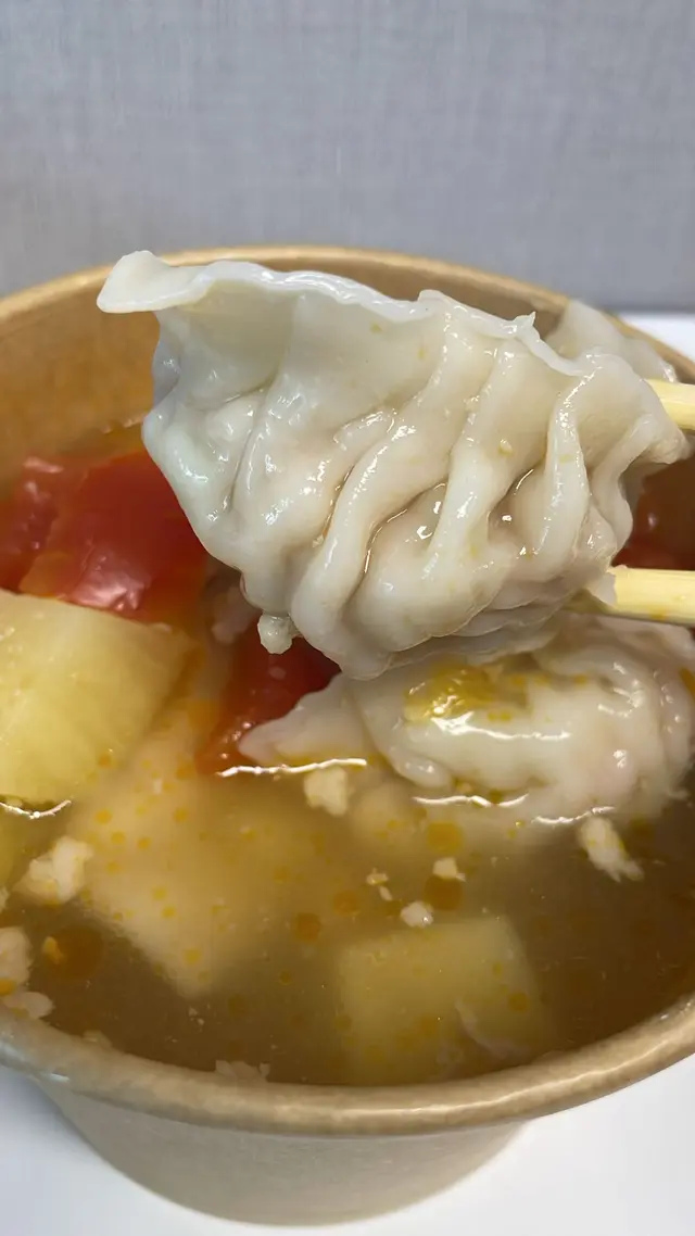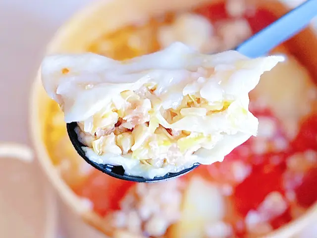 椰菜鮮肉湯餃配蕃茄薯仔湯