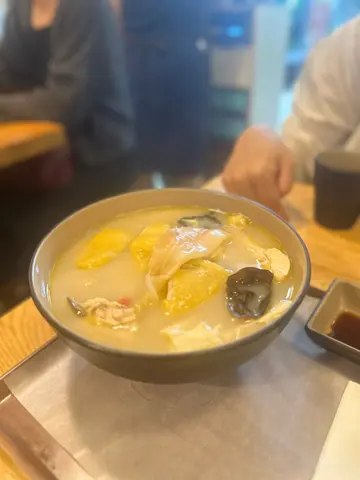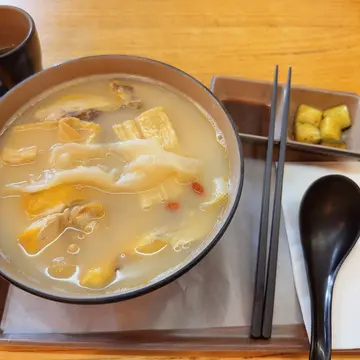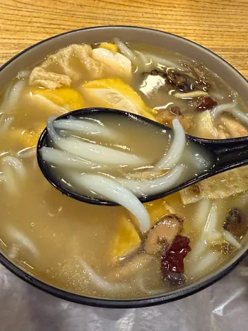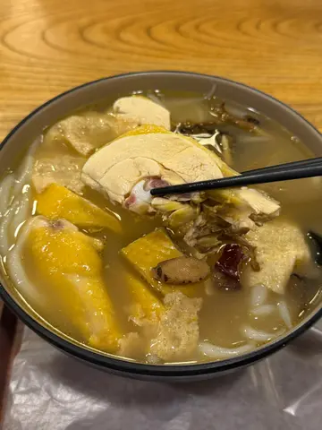 咁啱经过荃湾,就谂住去荃昌中心揾啲小店支持吓~呢间餐厅lunch嘅时候都好多人帮衬,座位有少少窄。一坐低会问你想饮冻茶定热茶,冻茶系罗汉果茶,热嘅系玫瑰花茶~我就饮罗汉果茶,清香解热午餐点咗古法药膳鸡汤配银针粉,而家都好少地方有银针粉食!一上菜就见到超大碗汤~热辣辣,用咗劲多中药材,党参、黄芪之类,汤头微微甘甜带药香,再带点红枣嘅香味☺️鸡件有成6、7件,份量十足,鸡肉嫩滑,唔会柴~整体都几好食,下次如果再食会想试醉鸡🤤天气转凉时饮一碗药膳汤,应该会有好补身温笠笠感觉😆
