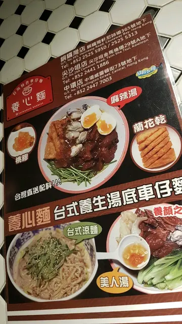 去开铜锣湾湾仔𠮶边,晏昼肚饿想食啲汤面,咁啱经过养心面, 望落个样都几健康