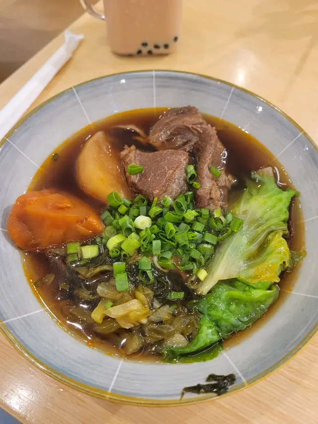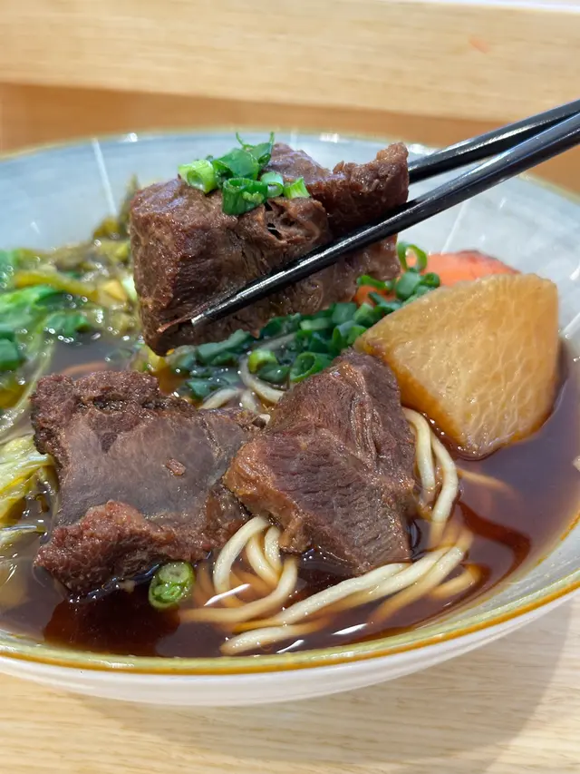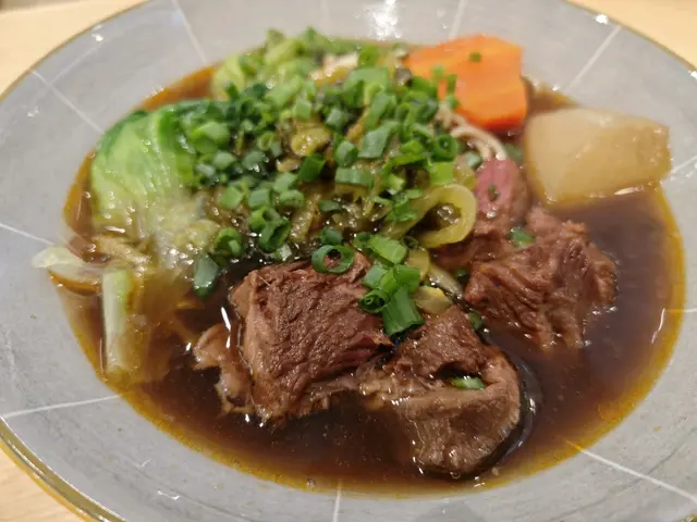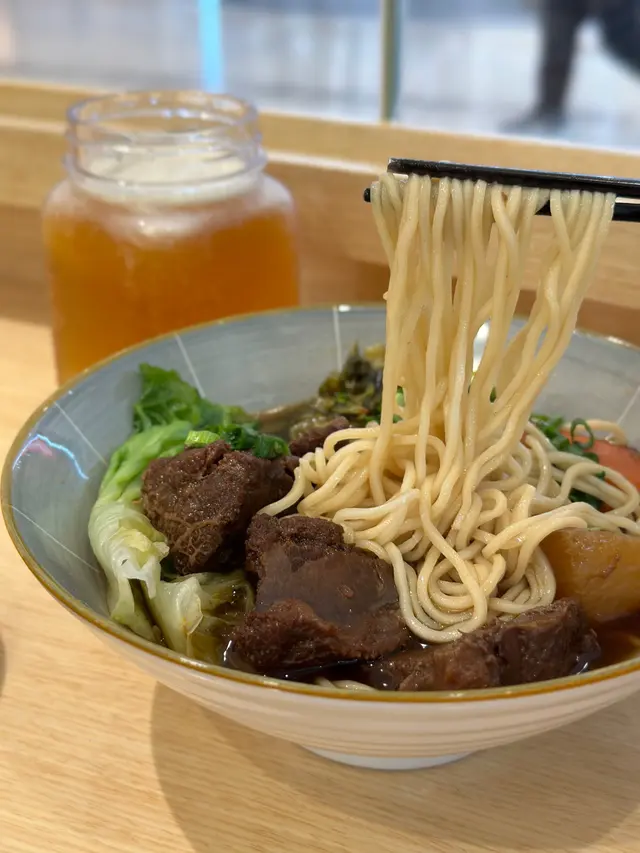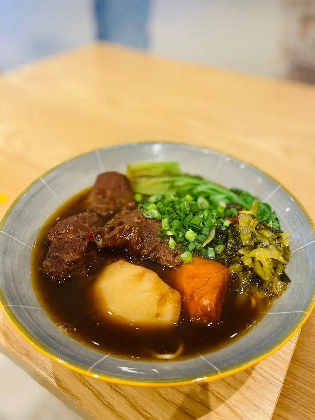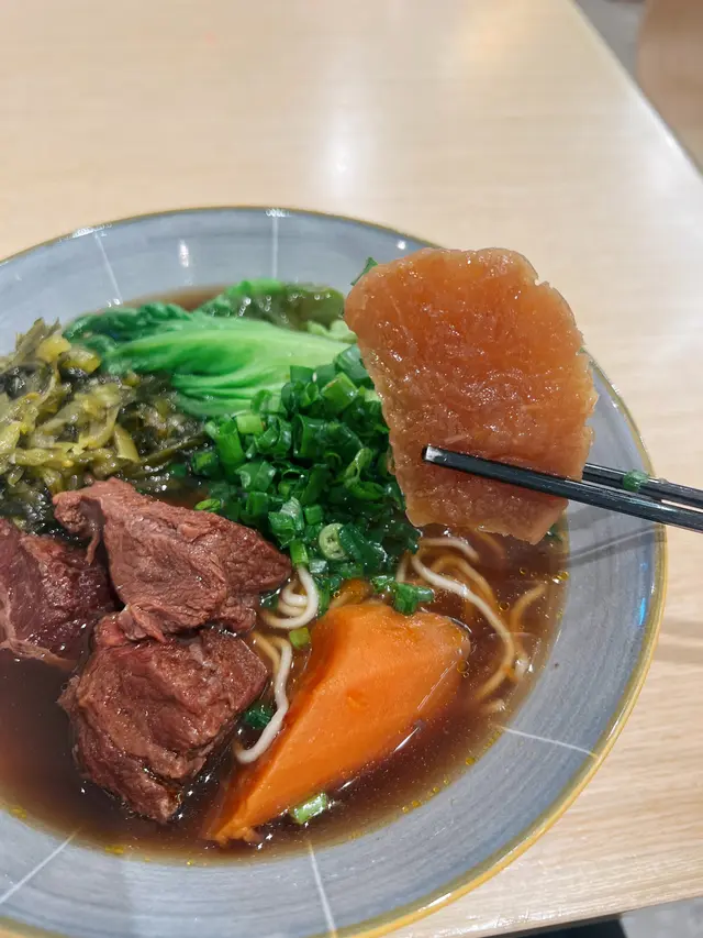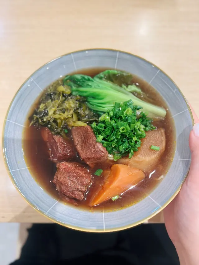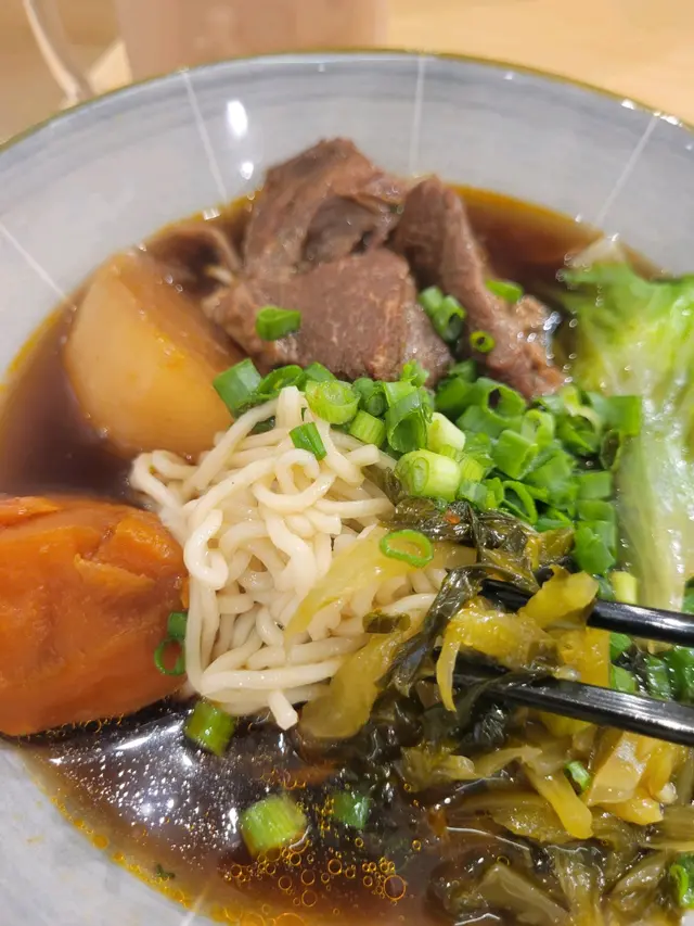 今日特登去荃灣搵食,試咗間街坊狂推嘅牛肉麵!一上枱已經聞到陣陣藥材湯香,飲啖湯先——哇,真係有驚喜!湯頭濃得嚟唔油膩,飲到尾都唔會口渴,仲有淡淡當歸同紅棗味,暖胃又舒服。牛肉絕對係亮點,每舊都厚切過癮,燜到連筋膜都軟綿綿,入口即化,滷汁完全滲入肉紋,鹹香中帶少少甜,食到lam lam脷!可惜麵條有啲失手,煮得過淋冇咗口感,如果師傅撈麵時快手啲,留返少少咬口就perfect池。不過份量真係冇得彈,八十蚊有幾舊牛肉加堆到滿嘅麵,仲要係即叫即煮,熱辣辣上枱。加埋一匙自家製酸菜,爽脆微酸中和油膩,即刻醒神晒!坐低望下環境,雖然舖頭細細但乾淨企理,阿姐仲好nice添。呢個價錢喺連鎖店肯定食唔到咁足料嘅味道,湯底似足屋企老火湯,冇味精感。食完成個人都暖笠笠,經過荃灣絕對值得回頭,尤其凍冰冰嗰陣,嚟一碗真係由身暖到心啊!…查看更多