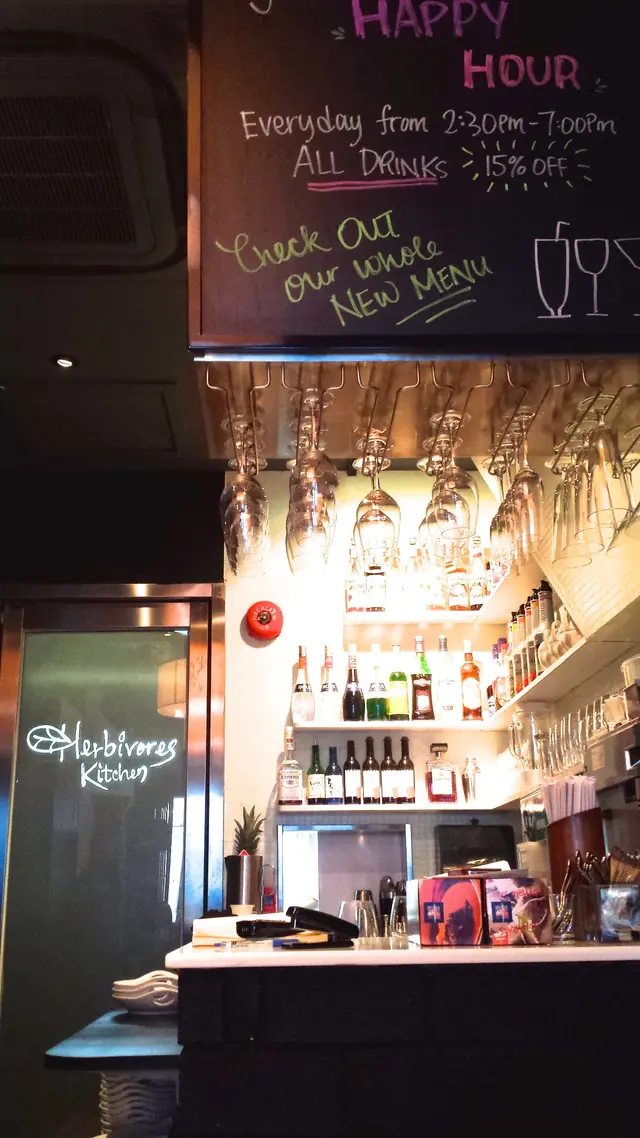A small restaurant in the popular SOHO area, which serves vegetarian Italian cuisine. Sounds unique ! Well, the dishes and tastes are also unique, which you cannot repeat anywhere in Hong Kong.Its a very small restaurant, with one big center dining table enough for a big family of 10 or 12 back home, but here you have to share this table with other customers. Its a unique dining experience and not an uncomfortable one.There is a big menu on one wall , with drinks menu on edge of the ceiling.The menu is constantly changing which makes it worth going again and again. The portions are average , enough to share between 2-3 people.Have tried many dishes here, and none of them are bad. Some of them are little rebellious if the Italians came to know about it.1. Japanese Plum PastaA fusion of Japanese and Italian, as the name suggests it combines Japanese sour plum with an olive oil based pasta with seaweed. Maybe not a cup of tea for everyone, but its worth trying if you love Japanese cuisine. And a thumbs up to Herbivores for thinking out of the box.2. Pesto Sauce PastaIts literally an evergreen pasta , and if you are in no mood to experiment then go ahead with this. Its a nice creamy in rich pesto sauce, which would melt away in your mouth.3. Avocado RollNow comes a Mexican-Italian fusion. This appetizer may have European combination of ingredients but its presented like a sushi. But its a nice appetizer to warm up your appetite.And there are other pastas, vegetarian mushroom steak, tofu main courses, caprese, bruschetta, soup of the day.In all there is a wide range in the menu, and its upto your mood of the day to choose your dishes.The staff is friendly and with 1 or 2 servers catering to you.The male restroom is worth a visit , to see how Hong Kong utilizes each and every inch in this space crunch city !Never tried their brunch, but have heard good reviews from those who have had their brunch there.Definitely not a place for group dining, but a different experience for a couple or two.…查看更多