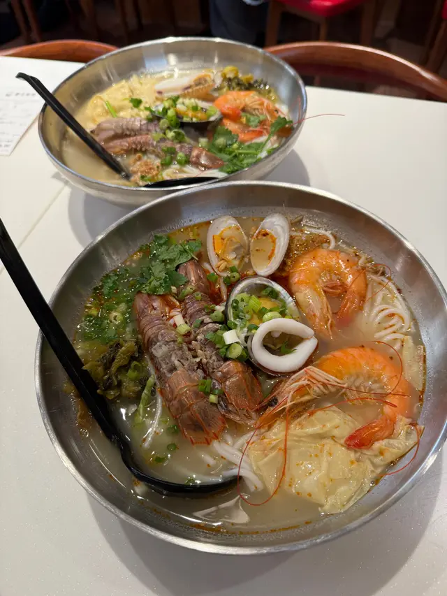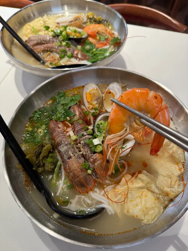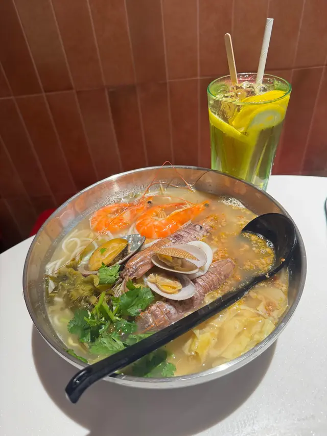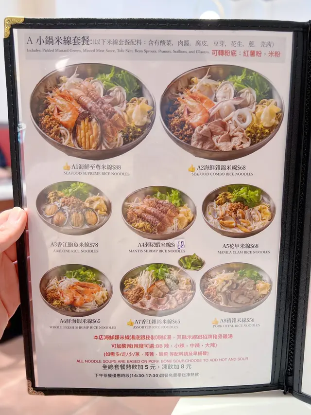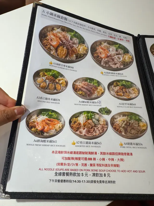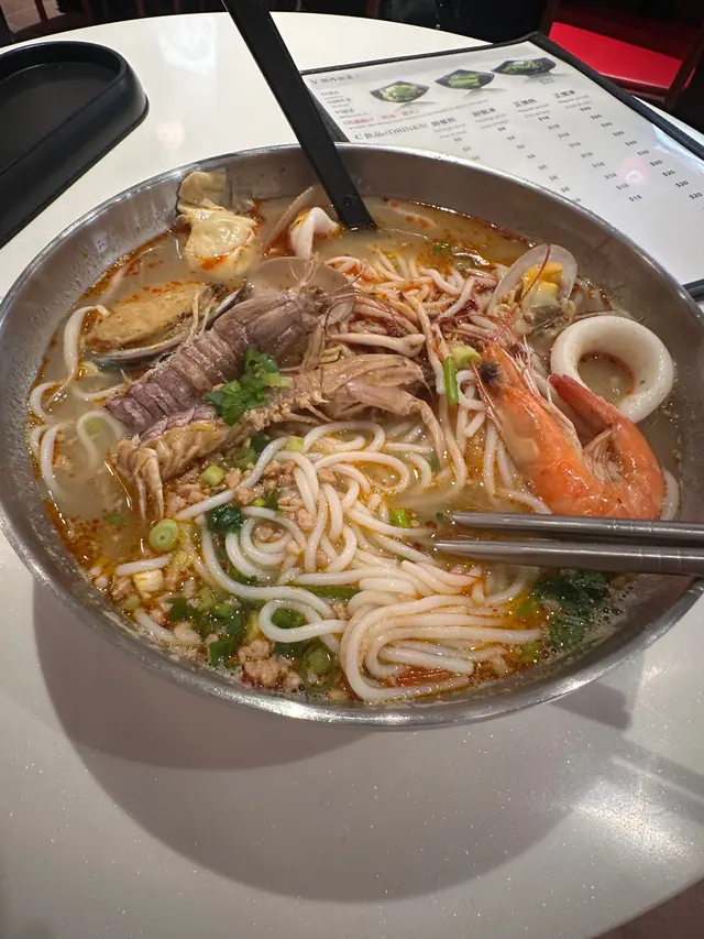 寸金尺土嘅銅鑼灣有一間新開嘅米線居然主打海鮮 而且價錢同平時啲米線店都差無幾咁梗係食海鮮啦 而且下午茶仲有嘢飲送海鮮至尊米線 -成座海鮮山咁高,睇見都流口水!鮑魚仔爽到彈牙,原隻上夠晒豪!瀨尿蝦就抵死,啲膏多到漏油 仲要勁貼心搣埋殼海蝦大大隻,蝦頭爆膏仲甜過糖,忍唔住連殼都啜埋最正係啲魷魚圈,又厚又脆,掛滿辣湯真係 邪惡到爆 !湯底先係靈魂!用肉碎吊味,加埋花甲啲海水鮮飲一啖鮮到打冷震紅薯粉索晒湯汁,嗦嗦聲吸到停唔到口最過癮係價錢,$88咋!仲可以要求加酸辣湯 一次過試晒兩個湯底缺點?碗太大食到捧住個肚走海鮮雜錦米線 -海蝦大大隻,蝦肉爽甜,蝦頭仲有膏啜落去鮮味爆棚!魷魚切到啱啱好,又彈牙又掛湯花甲雖然唔算大隻,但粒粒都冇沙海水味濃,啲湯即刻升呢! 牛肉片係驚喜!以為會好鞋,點知嫩滑到呢肉碎就係隱藏功臣,煮到化晒喺湯底飲落去多咗層肉香,唔會太油膩紅薯粉係精髓!煮得啱啱好,煙韌得嚟唔會爛索盡啲海鮮同牛肉嘅精華,一啖粉一啖湯嗦嗦聲 食到停唔到口!湯底本身偏清甜,但加咗少少辣椒油之後,香辣惹味價錢都係$68,咁多料真係抵到爛,大胃王都夠飽唯一挑剔係花甲可以再多幾粒同埋牛肉如果厚切啲會更滿足~ 呢個海鮮湯底真心正!鮮味爆棚,飲一啖成個海洋喺口裡面咁,仲要一啲都唔腥總括來講鮮味足、份量勁、性價比高絕對會再encore!海鮮控同澱粉質愛好者必試!除左米線都有客飯食,打工仔又多一個選擇套餐唔岩仲可以自選…查看更多