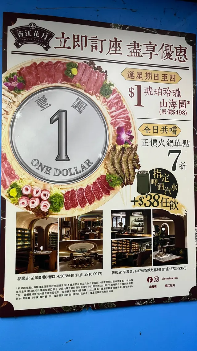 而家人人都話要北上搵食,但係我就怕咗舟車勞頓,寧願留港消費😄 其實香港好多有質素嘅食店,最近都推出唔少優惠💸 呢晚我就跟朋友仔嚟到一間充滿 #懷舊色彩 嘅 #火鍋店「香江花月」試吓佢哋嘅一蚊 #玲瓏琥珀山海圈,睇吓係咪真係咁抵👀餐廳以七八十年代 #老香港 背景做主題,幾乎每一個空間都係 #打卡位!打開餐牌,佢哋嘅 #特式湯底、同 #火鍋料 選擇都唔少,而呢晚我哋就點咗個 #花雕豬肚鍋,湯底材料非常豐富,除咗主菜 #豬肚 之外,師傅仲喺湯底入邊放咗啲 #酸菜、#胡椒、#紅棗... 入口淡淡清香,搞到一向為食嘅我,都忍唔住飲完一碗又一碗呀😉等咗一陣,主角「玲瓏琥珀山海圈」終於出場喇... 滿滿嘅材料,放喺幾乎有一米闊嘅大圓碟上面,裡面有 #黑豚肉、#黑豚腩卷、#虎蝦、#牛肉 🥩真係望到都興奮😚 大大隻虎蝦,肉質鮮甜又爽彈😋 而豚肉同牛肉嘅質素都唔錯... 究竟老闆點解可以做到一蚊咁優惠?除此之外,佢哋更推出 #期間限定 火鍋料 #七折優惠🤩 #桶蠔 啖啖肉啱晒我呢個 蠔控😋 另外佢哋 #自家製 嘅 #韭菜餃 同 #水餃 🥟 餡料都非常豐富,鍾意食餃子雲吞嘅一定要試!最後當然唔少得 #打邊爐必食 嘅 #響鈴、#水魷魚、#手工墨丸 同 #蝦丸 啦... 私心推薦加埋 #餐廳特製沙茶醬,會令食物更加香口㗎😋 臨走之前服務員提醒我,如果下次再嚟幫襯,記住預早一日通知佢哋預留「$1 玲瓏琥珀山海圈」,而生日嘅朋友仔仲可以得到餐廳嘅小花束🌹 所以我幾時都話,用心嘅餐廳,一定可以留住班客㗎😊📍香江花月 (佐敦) 佐敦道31-37號百誠大廈2樓 @victorianera_hk…查看更多