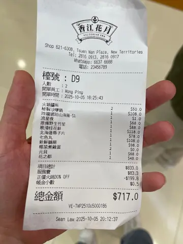得知香江花月的正价火锅30% OFF,即伙同火锅控前来享用优惠!美颜花胶鸡锅 $298,除了靓鸡半只外,还有大大件的花胶及虫草花。花胶有大量骨胶原对皮肤及软骨都有保健作用,好味又有益!玲珑琥珀山海圈 $1,原价要$498的山海圈,现特价只需$1圆。卖相有气派,有豚肉、牛肉、海虾等等,超级大满足!花花绿绿$118,美轮美奂的杂菜篮,有油麦菜、西洋菜、娃娃菜、花菜、蕃茄南瓜🎃等,新鲜翠绿,健康冇难度。桶蚝 $238,桶蚝新鲜肥美,缩水程度较一般生蚝轻微,肉质鲜甜爽口,白吃不厌。七彩饺子 $108,卖相极美,不论摆盘或者颜色,都甚为惊艳!七种颜色七种味道,款款真美味😋即炸响铃卷 $58,可以即食或者放汤,两者皆美味。即炸午餐肉 $58,外层香脆,可以即食或者放汤,炸过的午餐肉更耐煮,不会一下锅便散掉。饮品是千语录 $48及花之都 $48,就连饮品的卖相,都绝美,令人十分开心的边炉!…Read More