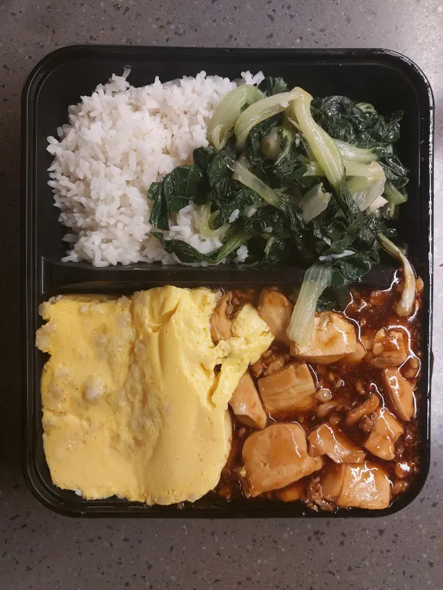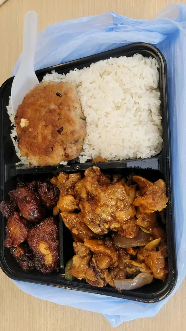 1) 鎮江黑醋骨,麻婆豆腐 飯 2) 蕃茄燴牛尾,冬菇豬肉釀節瓜脯,炒米粉 3) 椒鹽豬排,鎮江黑醋骨,紹菜粉絲蝦米 飯 4) 鎮江黑醋骨,蓮藕蔥花煎肉餅,豉椒雞脾球,飯