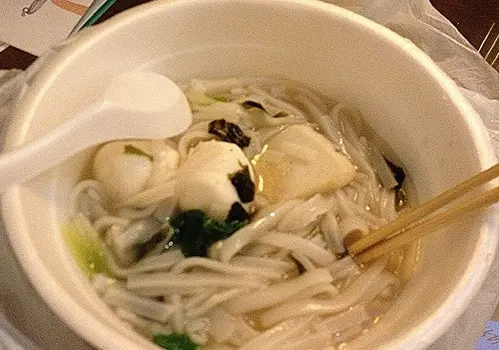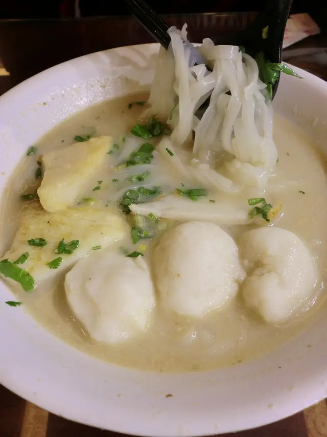 看看餐牌,以尖沙咀來說,價錢普通不是特別貴,由於晚上不想吃太油膩,所以我選了招牌魚蛋粉招牌魚蛋粉($39)湯底很淡,沒什麼香味,味道一般,魚蛋不是特別彈牙,反而魚片頭不錯,咬落脆脆的口感,有魚蛋味而我選了米粉,口感有點像超力銀絲米粉,因此與其他粉麵店不同,不錯