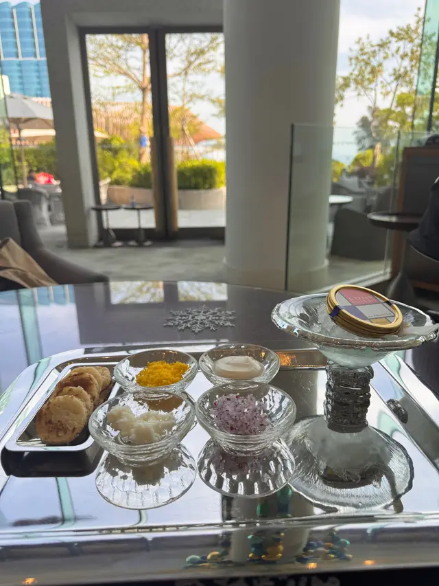 celebrate this Mid-Autumn Festival with the Whispers of Stardust Afternoon Tea @kerryhotelhk 🫖 presented in elegant glassware reflecting the luminous moonlight 🌕 indulge in exquisite savoury bites and curated sweet delights 🍰 featuring foie gras and caviar 🌊 enjoy with freshly baked scones and bottomless beverages ☕️享受「星語月夜下午茶」 @kerryhotelhk 大堂茶座 🫖 晶瑩玻璃器皿映照皎潔月光 儀式感滿滿 夢幻打卡 🌕 品嚐精緻鹹點及精美甜點 🍰 包括鵝肝醬及魚子醬 🌊 還有新鮮烘培鬆餅及無限暢飲☕️= 𝗪𝗛𝗜𝗦𝗣𝗘𝗥𝗦 𝗢𝗙 𝗦𝗧𝗔𝗥𝗗𝗨𝗦𝗧 𝗔𝗙𝗧𝗘𝗥𝗡𝗢𝗢𝗡 𝗧𝗘𝗔 = 星期一至五 HKD$638 兩位星期六、日及公眾假期 HKD$668 兩位— 𝘀𝘁𝗮𝗿𝘁𝗲𝗿 —🍇 冰鎮日本提子japanese grapes on ice爽脆爆汁 冰涼入口 清甜如露 果香濃郁— 𝘀𝗮𝘃𝗼𝘂𝗿𝗶𝗲𝘀 —🐟 煙三文魚配魚子醬 smoked salmon and caviar柔嫩煙熏 鹹鮮層次 金箔點綴 奢華精緻🦆 柑橘鵝肝 foie gras kumquats濃鬱鵝肝 入口即化 橙醬點綴 香氣四溢🥙 蘑菇三文治 mushroom sandwich外酥內嫩 蘑菇鮮美 蜜糖牛油 甜香交融🦀 香草蟹肉柚子撻 crab meat tart酥脆撻皮 滿滿蟹肉 柚子清香 清新不膩— 𝗳𝗿𝗲𝘀𝗵𝗹𝘆 𝗯𝗮𝗸𝗲𝗱 𝘀𝗶𝗴𝗻𝗮𝘁𝘂𝗿𝗲 𝘀𝗰𝗼𝗻𝗲𝘀 —🍞 plain scones and pu’er scones原味鬆餅 普洱鬆餅 微酥鬆軟 輕盈不乾搭配三款 法式果醬 奶油忌廉 酸甜滑順— 𝘀𝘄𝗲𝗲𝘁𝘀 —🐰 香芋雲呢拿蛋糕 taro and vanilla cake香芋柔和 蛋糕餅乾 奶香忌廉 絲滑細膩🌕 芝麻焦糖撻 sesame and carmel tart撻皮酥脆 焦糖忌廉 芝麻慕絲 焦甜柔滑🍓 荔枝士多啤梨蛋糕lychee and strawberry dream蛋糕鬆軟 草莓果醬 清甜荔枝 果酸清新🍐 香梨伯爵茶蛋糕 pear and earl grey cake香梨果甜 佛手柑香 杏仁蛋白 酥脆豐富— 𝗯𝗲𝘃𝗲𝗿𝗮𝗴𝗲𝘀 —☕️ 兩小時無限添飲咖啡或茶2 hours unlimited refill coffee or tea🥂 提拉米蘇特飲 tiramisu special drink📍紅磡紅鸞道38號香港嘉里酒店3樓 🇭🇰*…查看更多