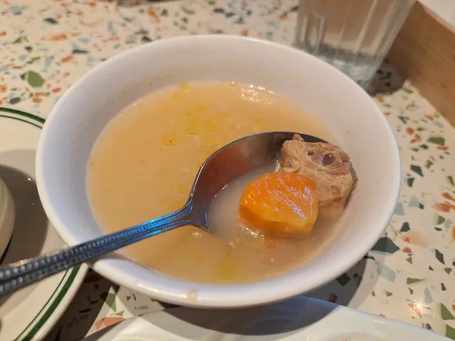 今午放lunch跟同事尼到美孚蘭秀道美孚新村地下的"香港地‘’西餐廳共進午餐。 店舖內地方都頗為闊落,光線充足,坐得舒服。 這裏有一個自助水吧,如要飲水就要自行斟水。 餐單裏有多款套餐可以選擇,又可以單點。有中餐和西餐,適合不同人任的口味。 我叫了一個午市套餐,包一個中式餐湯或西式餐湯,再加熱飲一杯,熱飲我叫了一杯熱檸檬水,如想轉凍飲或特飲,就要加錢。 三絲炒瀨粉套餐 $68今日中式餐湯係紅蘿蔔排骨湯,紅蘿蔔甜而新鮮,排骨又夠淋滑,紅蘿蔔和排骨的精華融化在餐湯裏,飲落感覺清甜可口。 三絲炒瀨粉瀨粉裏混入了火腿絲、紫洋蔥絲、芽菜、义燒絲和葱段。瀨粉炒得非常均勻,條條都掛上了醬汁,十分彈牙和入味。火腿絲帶有少許咸香味,义燒也不覺太乾,有义燒的燒香味,芽菜爽脆,可惜紫洋蔥就比較生了一點,因我不太喜歡食未熟透的洋蔥,雖然爽脆,但感覺有點辣口。 …查看更多