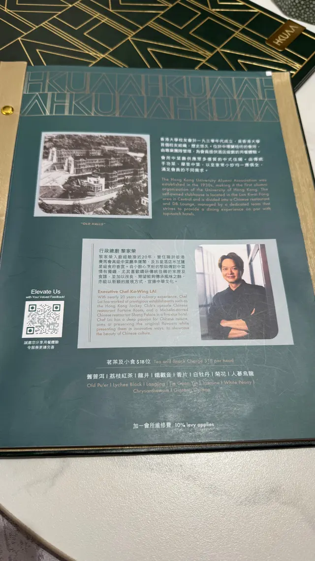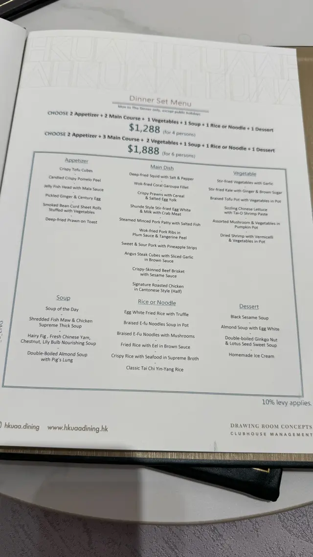 Chef Ecy’s Dining Experience🥰 Food | Ambience | Service | Easy Access | Price | Restroom Cleanliness | Wheelchair Friendly🙂 Easy Parking😠 Pet Friendly | Cake Cutting Fee | Corkage FeeThis restaurant is an exclusive dining clubhouse for HKU Alumni, open to members only. I've visited a couple of times and have always been impressed with their food, and this visit was no exception. Every dish was delicious!The location is very convenient, right in the heart of Central near Lan Kwai Fong. It‘ just 3 minutes walk from Exit D2 Central MTR Station. The entrance is at street level, and a lift takes you up to the restaurant, making it easily accessible for wheelchair users. The venue itself is bright, clean, tidy, and very cozy.The menu has a great variety and changes from time to time. There are many signature dishes, such as Prawn Toast 虾多士, Almond Juice and Pig's Lung Soup 杏汁猪白肺汤, Baked Salted Chicken 盐焗鸡, and many more. You can choose from both an à la carte menu and set menus.Some of the most impressive dishes included:· The Stir-Fried Grouper Fillet 油泡龙趸球: The fish was delicious and cut into large, generous pieces.· The Baked Salted Chicken 盐焗鸡: It was incredibly impressive, with crispy, thin skin and tender, perfectly seasoned meat.· The Bean Curd Sheet Rolls 素鹅: This dish was very colorful, and the taste was wonderful, with the different textures and flavors combining perfectly when chewed.· The Candied Crispy Pomelo Peel 糖脆柚皮: This was a surprising and delightful dish. The outside was crispy and coated in a sweet and sour sauce, while the inside was soft.Every single dish we ordered was excellent. The hot dishes were served piping hot, still steaming. Service was also excellent.The restrooms are clean and well-maintained. Note that they charge a corkage fee and a cake-cutting fee of HK$150. Although it's a clubhouse, a 10% service charge is also added to the bill.Overall, it was a wonderful dining experience, and we enjoyed ourselves immensely.…查看更多