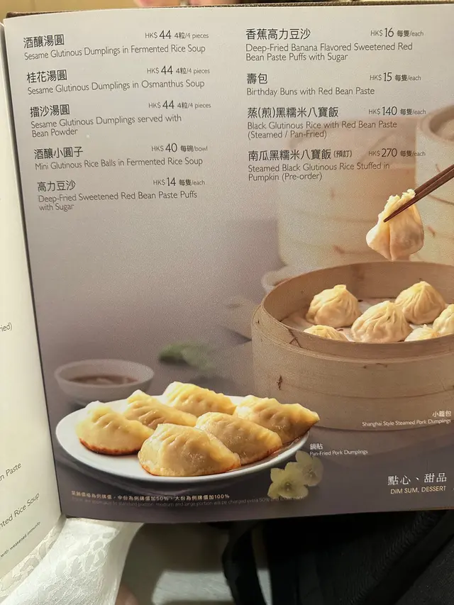 风起了感觉更似不见了的秋天吧🍃,再来万众期待的蟹粉吧🦀 说起大闸蟹,不得不提阳澄湖大闸蟹,而苏浙对其演绎尤其讲究。宁波菜虽似却非上海菜,后者以肉类为主;而前者因沿海优势关系,海鲜料理更多🦐,所以处理虾蟹鳝鱼等更常见。例如来个蟹粉拌面,每晚的份量是中午新鲜拆的;没有多余的配料,蟹鲜不鲜一吃就知,完全没法遮盖🦀 另外如🦐清炒虾仁、腌笃鲜🍲等都是以盐做咸味,不像上海菜的浓油赤酱,颜色很清澈但咸鲜味道足够。浓味的百页东坡肉和樟茶鸭也不会让人觉得腻开胃的前菜也有许多选择,茶熏蛋烟熏味道扑鼻如醉鸡和肴肉价钱也合理这里的点心如高力豆沙和小笼包都做得出色而葱油厚饼尤其高质,外干脆内咸香,应该是香港吃到最好吃的,没有之一👍 还有炸臭豆腐也是必点,与香港街头小吃吃到的味道完全不一样,那份臭香不会很浓烈,豆腐发酵得质感很特别,外皮酥脆干身要加甜酱及豆瓣酱混酱吃才滋味🤭-美味烟熏蛋🥚($20/pc)炸臭豆腐 ($22/pc)醉鸡🐥($120)镇江肴肉🐷($162)烤麸 ($147)清炒蟹粉🦀($1300)光拌面🍜($32/bowl)清炒虾仁🦐($520)古法鳝糊 ($460)樟茶鸭🦆($220/half)腌笃鲜🍲($1170)干煸四季豆🫛($135)百叶结烤肉🐷($140)雪菜毛豆百叶 ($90)糖醋排骨🍖($135)小笼包 ($12/pc)葱油家常饼 ($70)香蕉高力豆沙🍌($16/pc)(留意很多𩠌菜都有中份大份之分,以上价钱是以一桌12人份的点餐而定价)